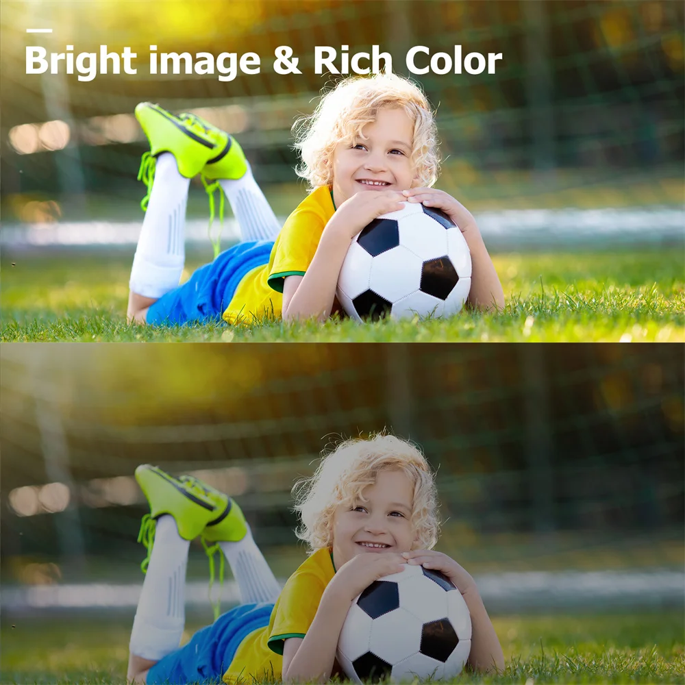 <8500 lúmenes proyector de vídeo HD>: El proyector WEWATCH es 2-3 veces más brillante que otros mini proyectores al mismo precio. Soporta hasta 1080P, increíblemente proporciona una imagen vívida para videos y películas, puede disfrutar del tiempo feliz con su familia o amigos en casa o al aire libre.