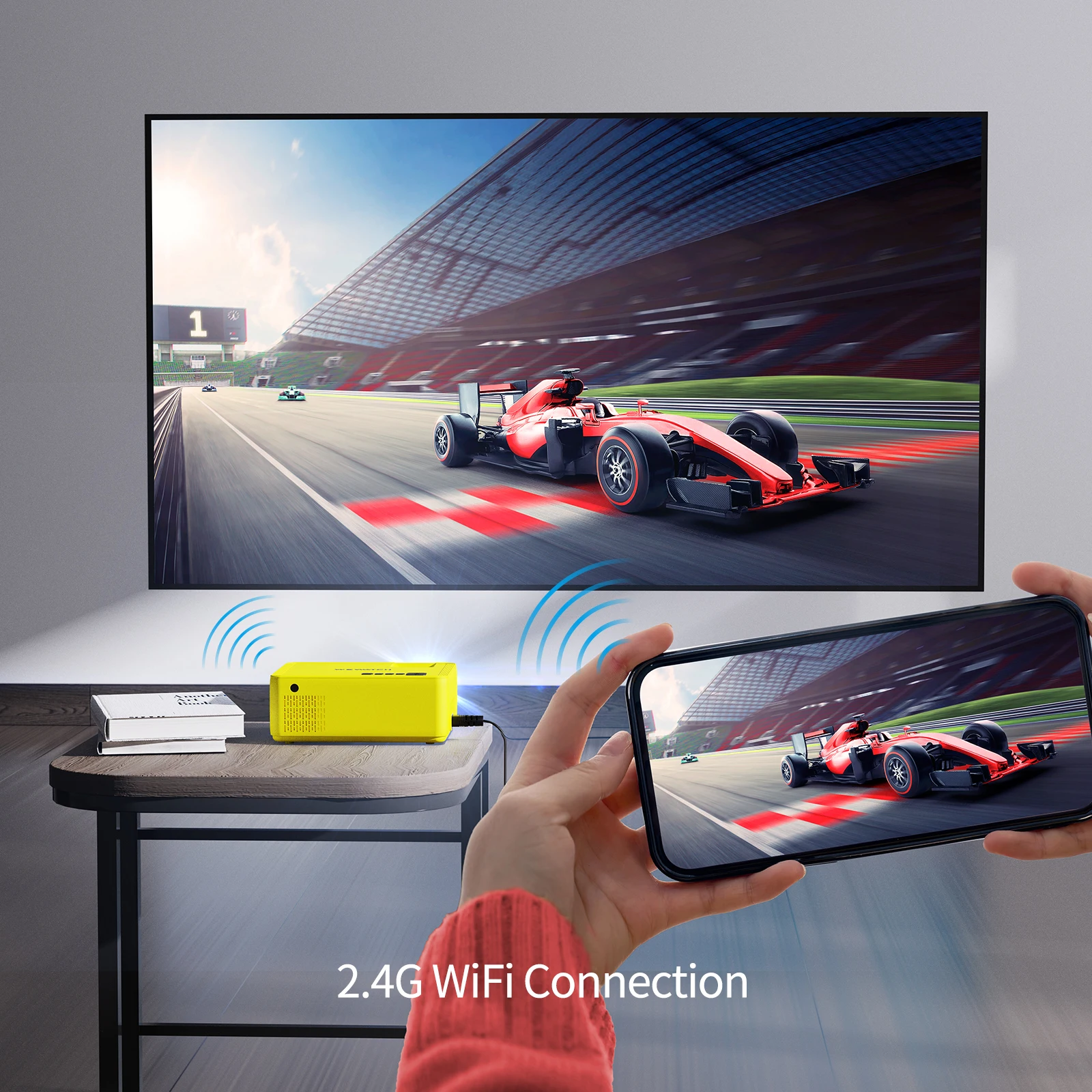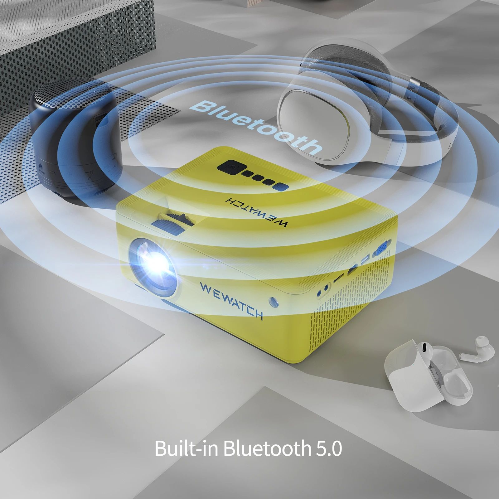 <Conexión Wifi 2,4G y función Bluetooth 5,0>: El proyector WEWATCH tiene la función de bluetooth, puede conectar su Altavoz bluetooth ideal de forma inalámbrica en cualquier momento. El WiFi ultrarrápido de 2,4G permite una experiencia de transmisión gratuita de lag para juegos en línea y transmisión de vídeo sin interrupciones. La función de compartir pantalla inalámbrica ofrece comodidad para ver todo tu contenido favorito transmitiendo desde dispositivos iOS o Android.