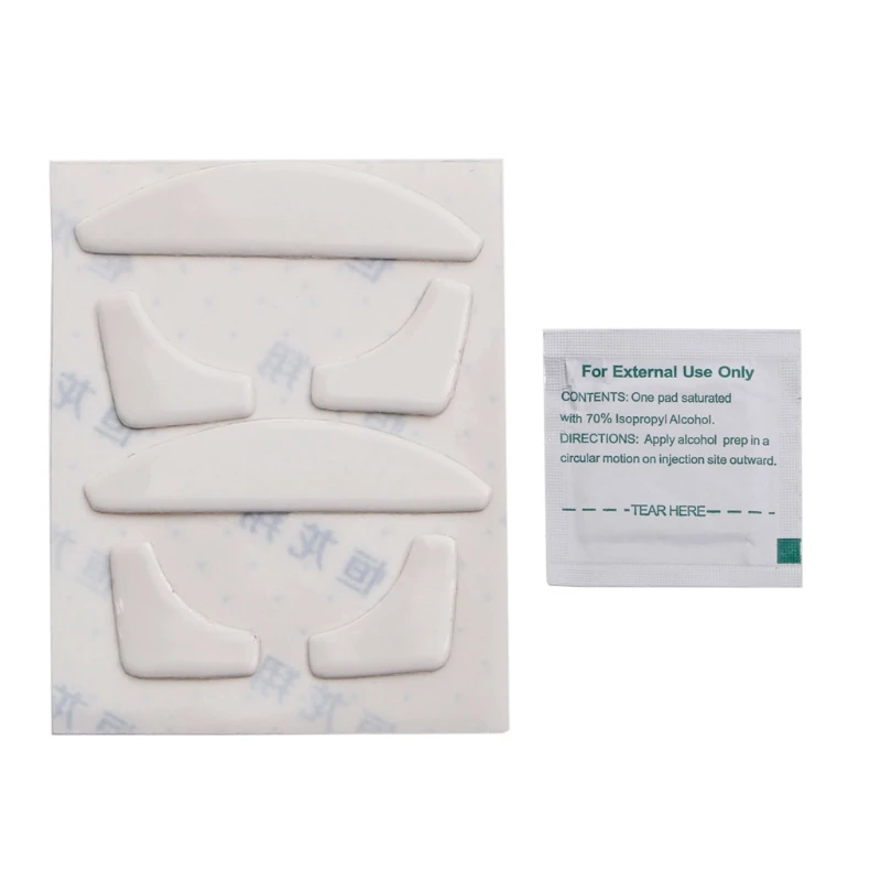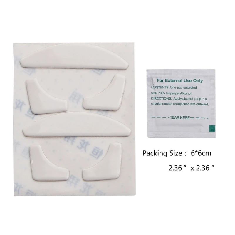Nota:Este producto es un pie de ratón de repuesto. Después de quitar la pegatina original del pie del ratón, limpie la parte inferior de la carcasa con el algodón que se adjunta en el paquete y luego pegue los nuevos pies del ratón.