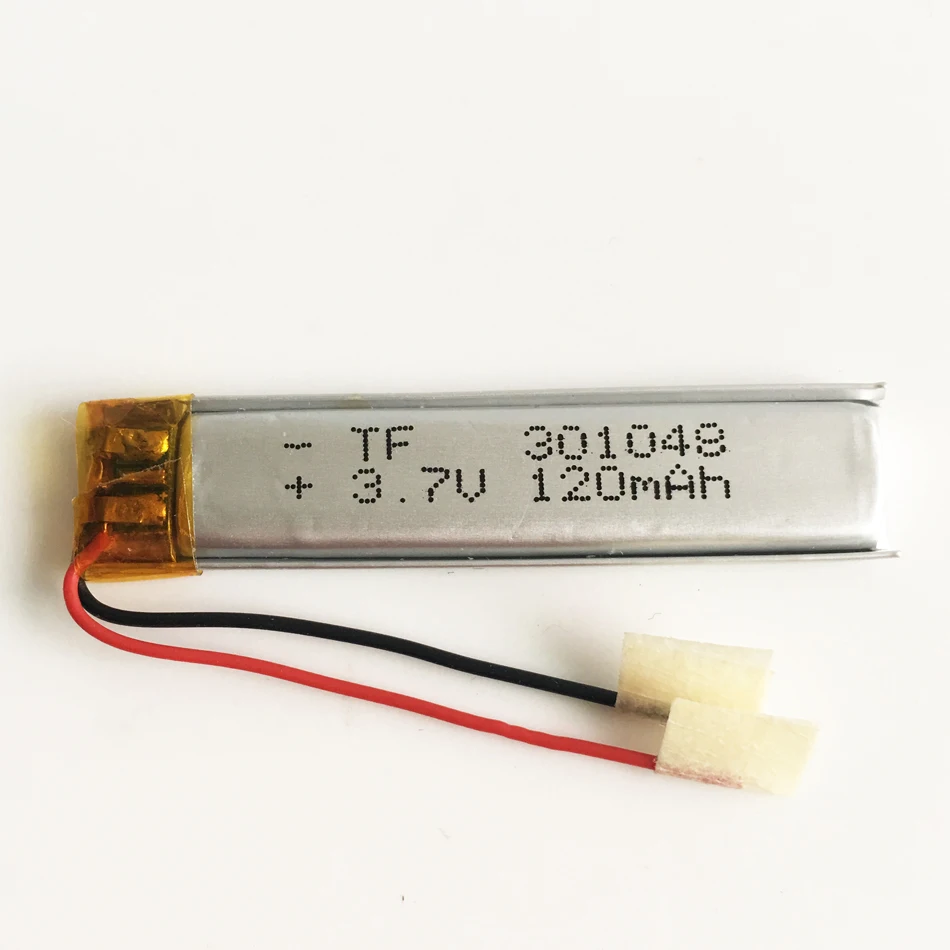 Características:1 100% nuevo2 ¡Alta calidad y alta capacidad!3 Circuito de protección incorporado PCM para evitar sobrecargas o sobredescargas4 Tamaño: 3 mm (alto) * 10 mm (ancho) * 48 mm (largo)5 Clasificación: DC3.7V 120mAhModelo: 301048 Tamaño: alto=3 mm ancho=10 mm largo=48 mm Peso: 3 g/unidad voltaje: 3,7 V capacidad: 110 mAh, descarga 1C Corriente de carga: carga estándar, carga rápida: 1,0 C: 0,5 C Método de carga estándar: 0,5 C CC (corriente constante) carga a 4,25 V, luego CV (voltaje constante 4,2 V) carga hasta que la corriente de carga sea menor o igual a 0,05 C La corriente de carga máxima: 1C Corriente máxima de descarga: 1C Tensión de corte de descarga: 2,75 V La temperatura de descarga: -20 grados C ~ +60 grados C Tiempo de carga: 2-4 horas (estándar); 2 horas (rápido) Función de protección: sobrecarga, sobredescarga, sobrecorriente, protección contra cortocircuitos, protección contra sobretemperatura Se puede recargar repetidamente. Circuito de protección PCM incorporado para evitar sobrecargas o sobredescargas.