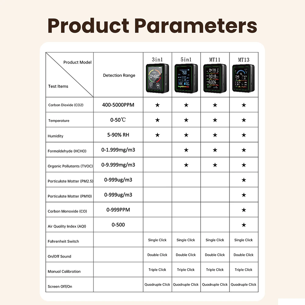 6.9 pruebas: sensores integrados de alta precisión, identifican rápida y eficientemente co2, co, formaldehído hcho, tvoc, pm0.3, pm2.5, pm10, detección de temperatura y humedad en el aire, con funciones integrales.