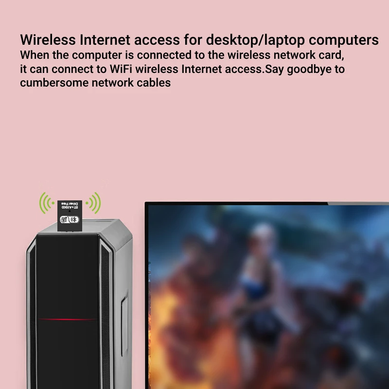 La tarjeta de red USB inalámbrica de doble banda es adecuada para la conexión inalámbrica de PC de escritorio y otros dispositivos, y puede proporcionar un acceso inalámbrico a Internet cómodo y rápido.La tarjeta de red admite la función de detección automática y puede ajustar automáticamente la velocidad.