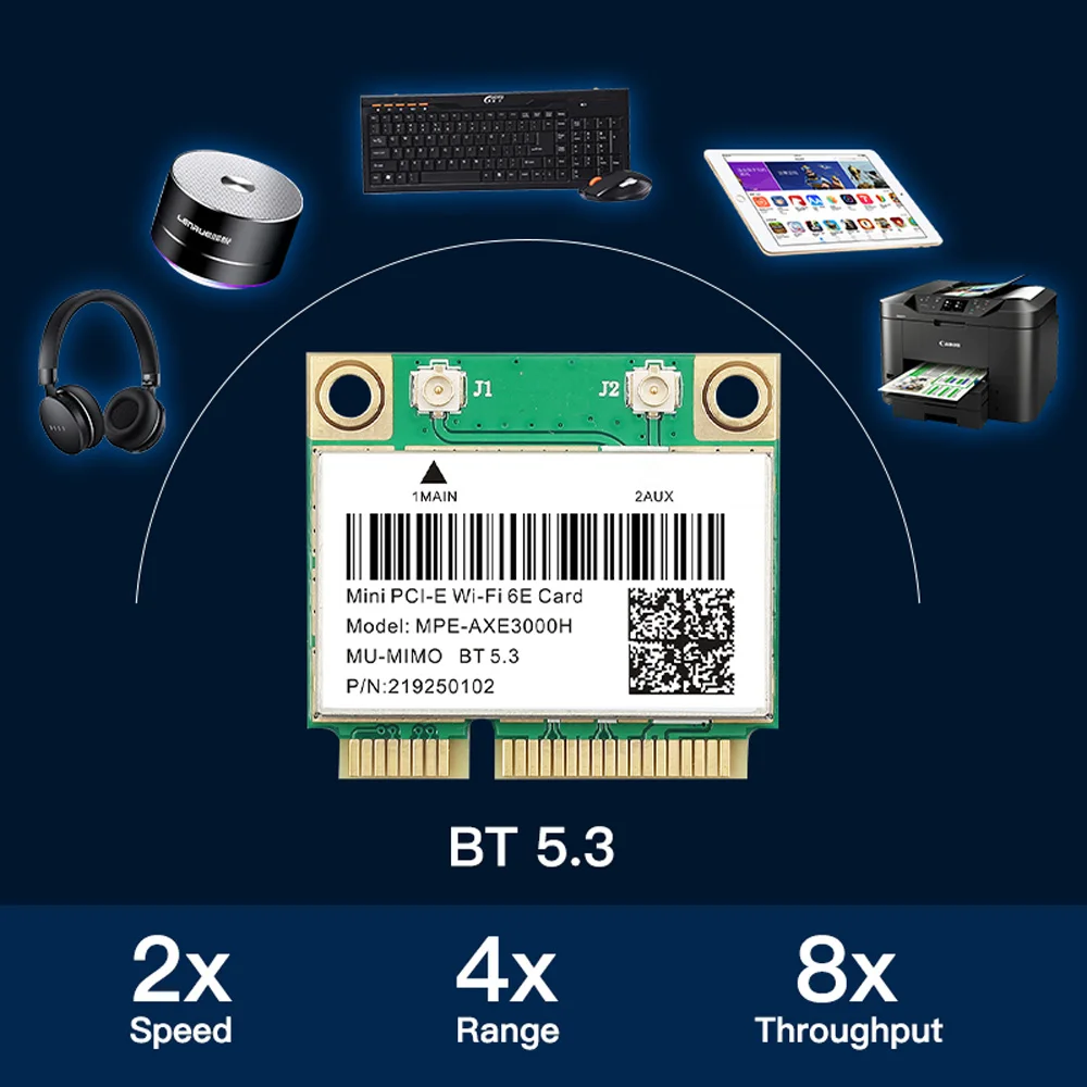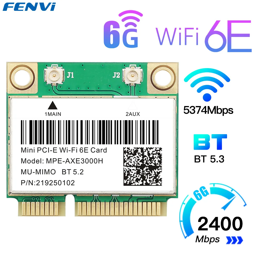 Para Intel AX210 WiFi 6E 5374Mbps Mini tarjeta WiFi inalámbrica PCI-E para Bluetooth 5,3 802.11AX 2,4G/5G/6Ghz adaptador de tarjeta de red para Windows 10