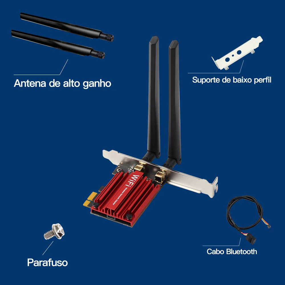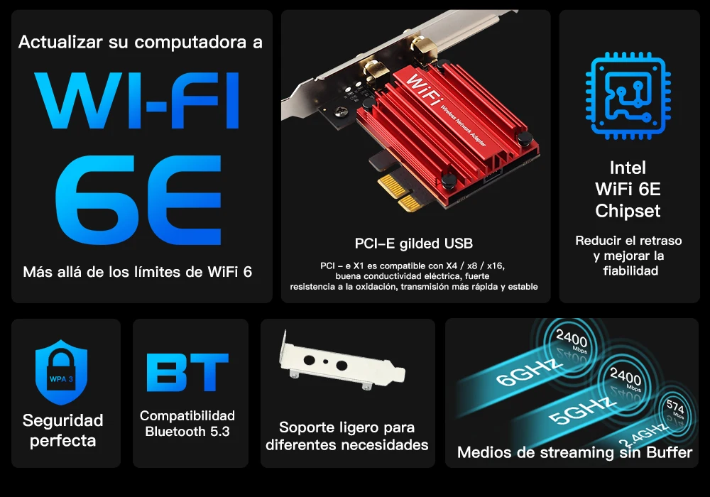 Tarjeta PCIe WiFi 6E (11AX) | 1024QAM | OFDMA | MU-MIMO | Antenas de alta ganancia 6dBi | Bluetooth 5,3