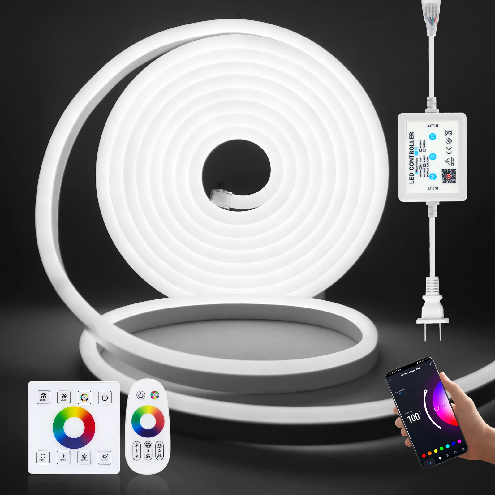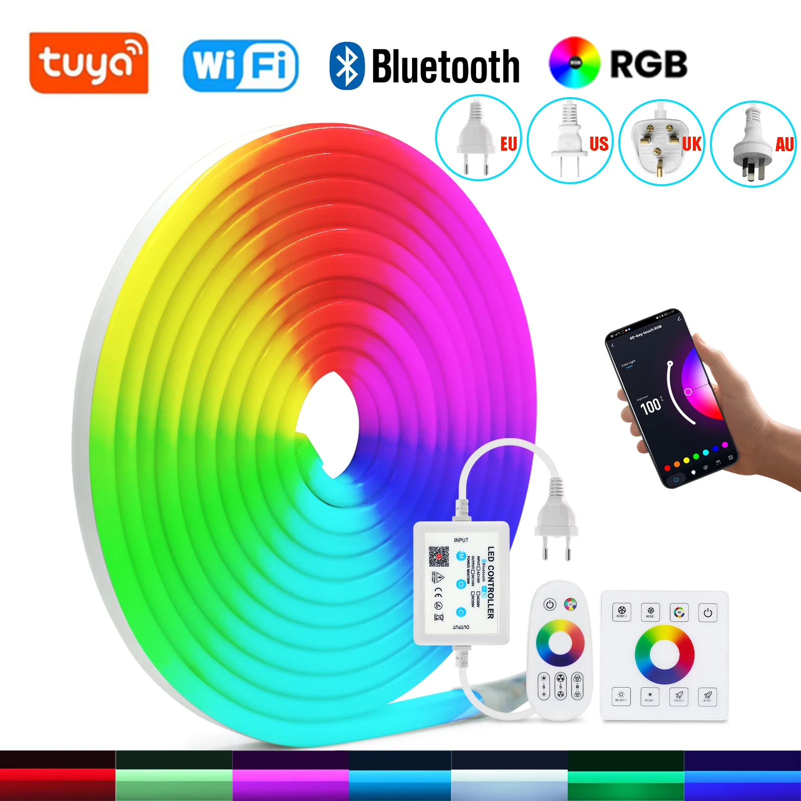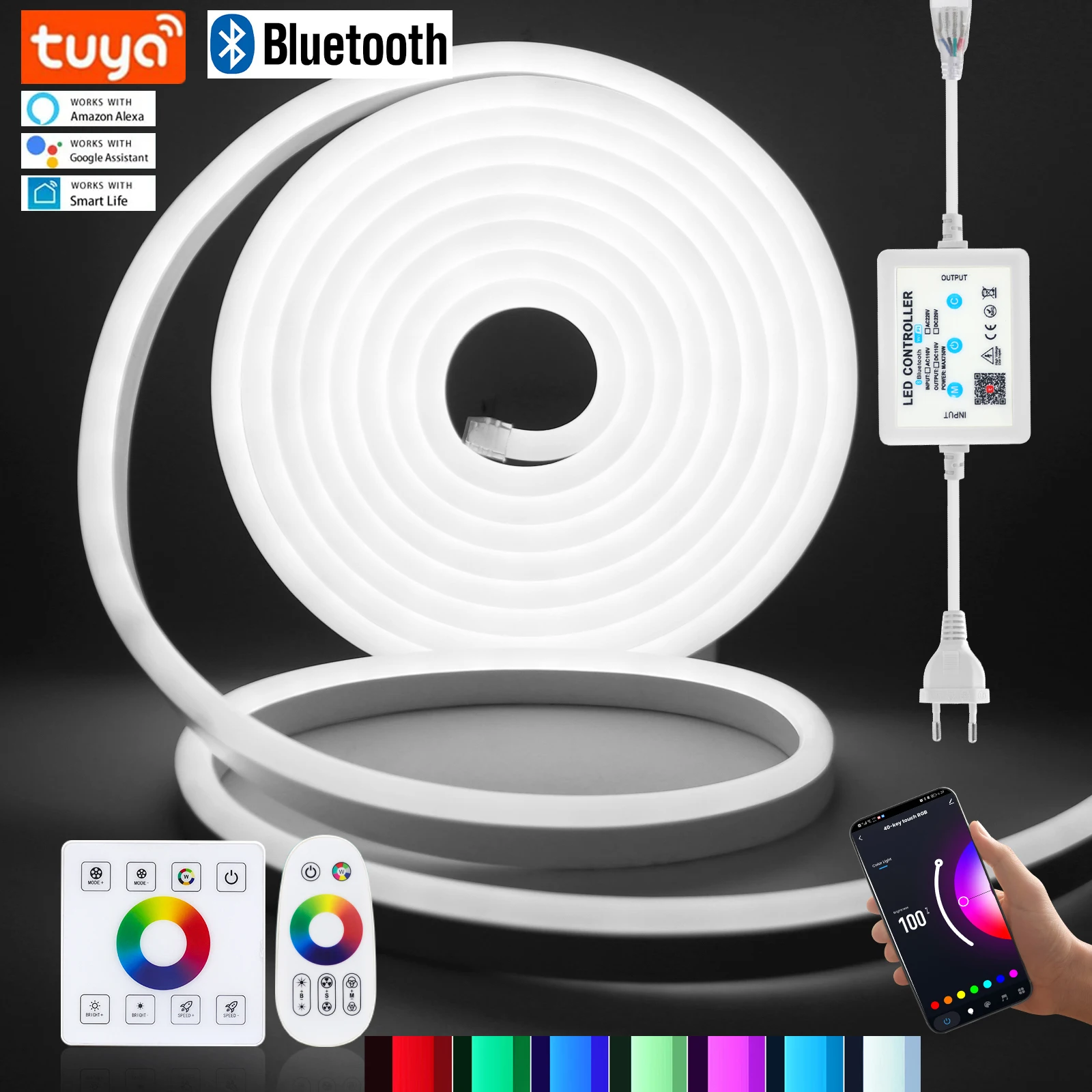 Comprar Tuya WiFi/Bluetooth/remoto 110V 220V RGB tira de luces LED de neón 5050 lámpara de cuerda regulable impermeable para decoración de habitación al aire libre