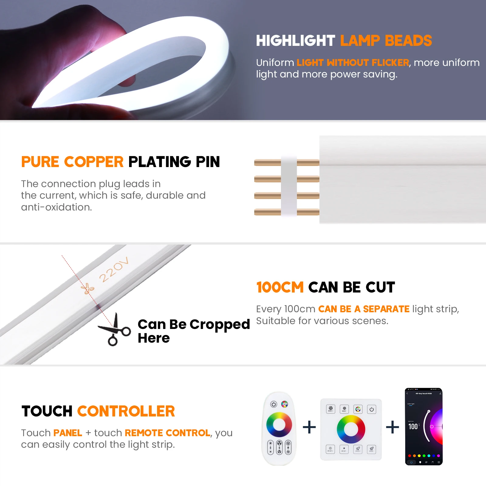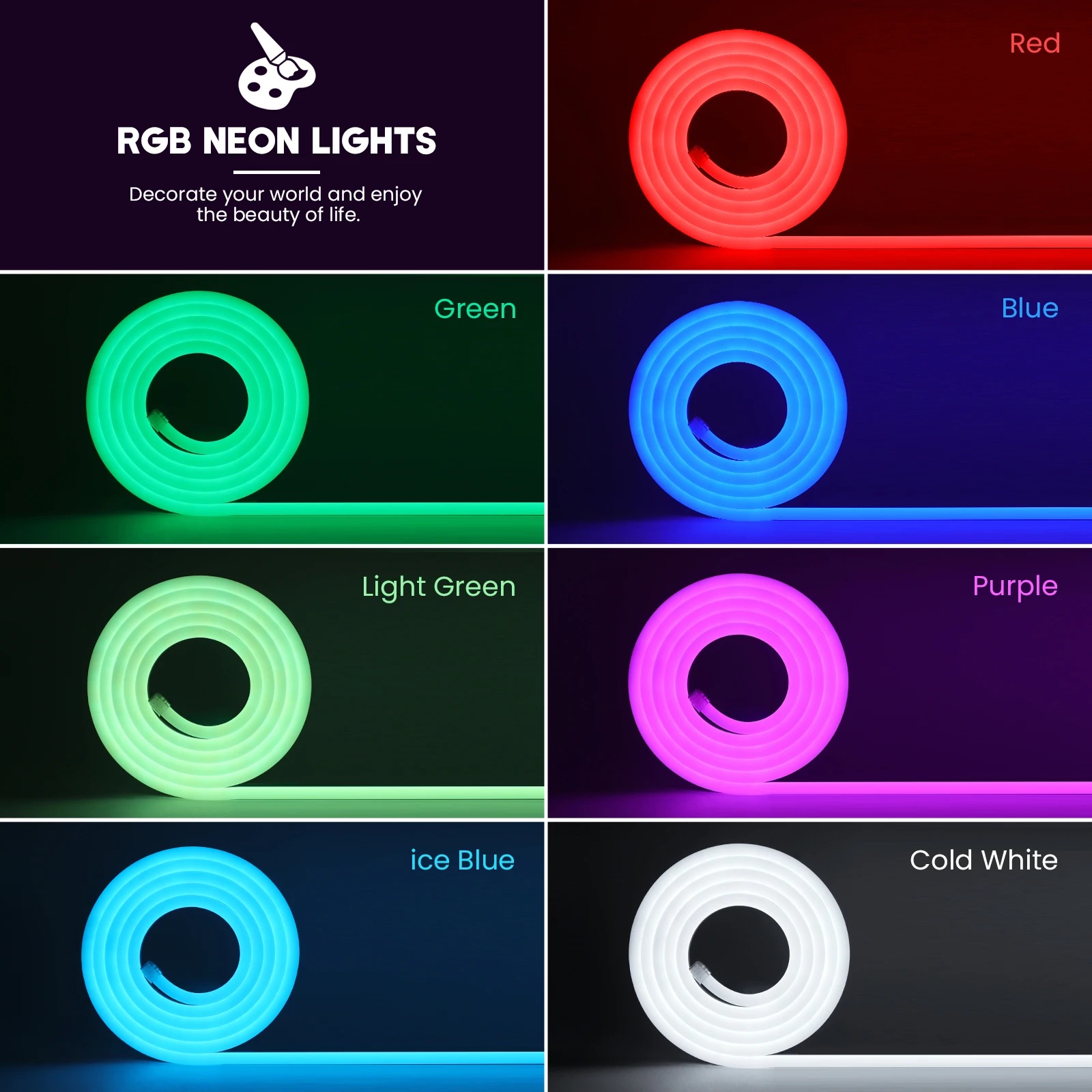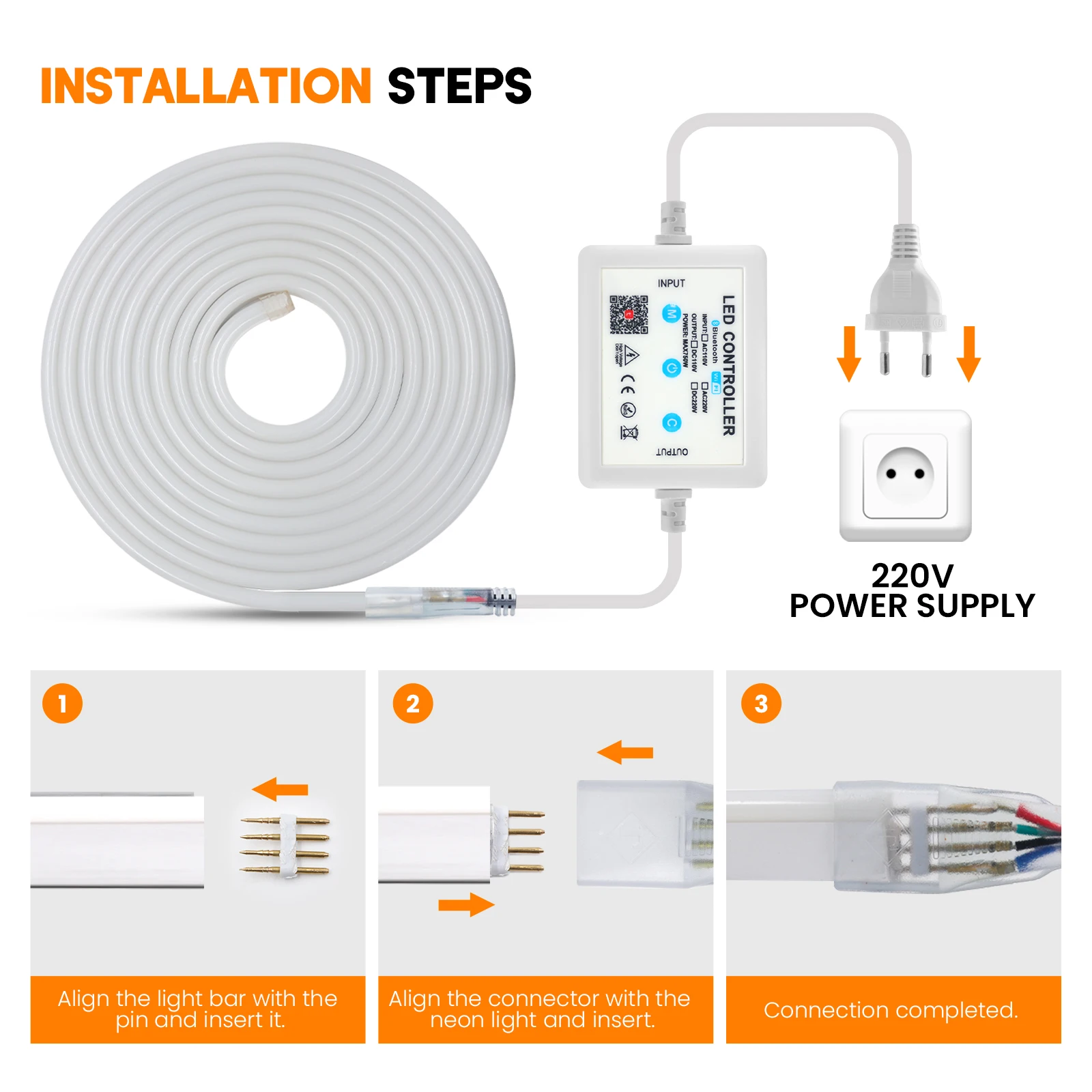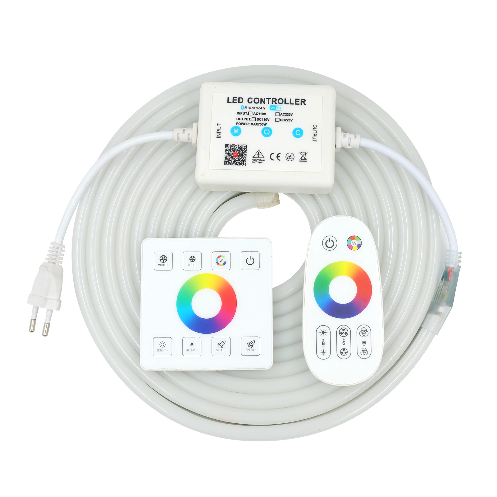 Comprar Tuya WiFi/Bluetooth/remoto 110V 220V RGB tira de luces LED de neón 5050 lámpara de cuerda regulable impermeable para decoración de habitación al aire libre