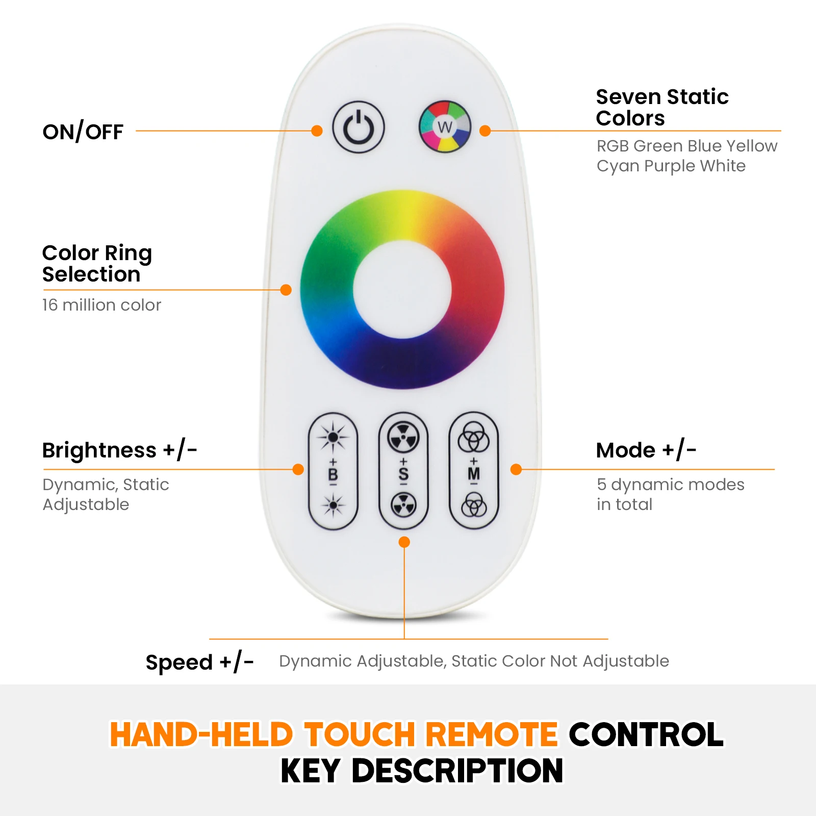 Grado de impermeabilidad: IP65 resistente al agua (tira LED), la carcasa del controlador no es resistente al agua.