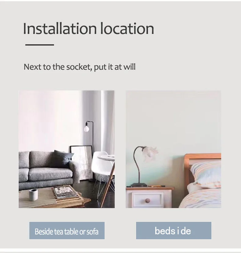 1.Fácil de instalar, pegue a la pared, luego conéctelo y conéctelo al interruptor inteligente.