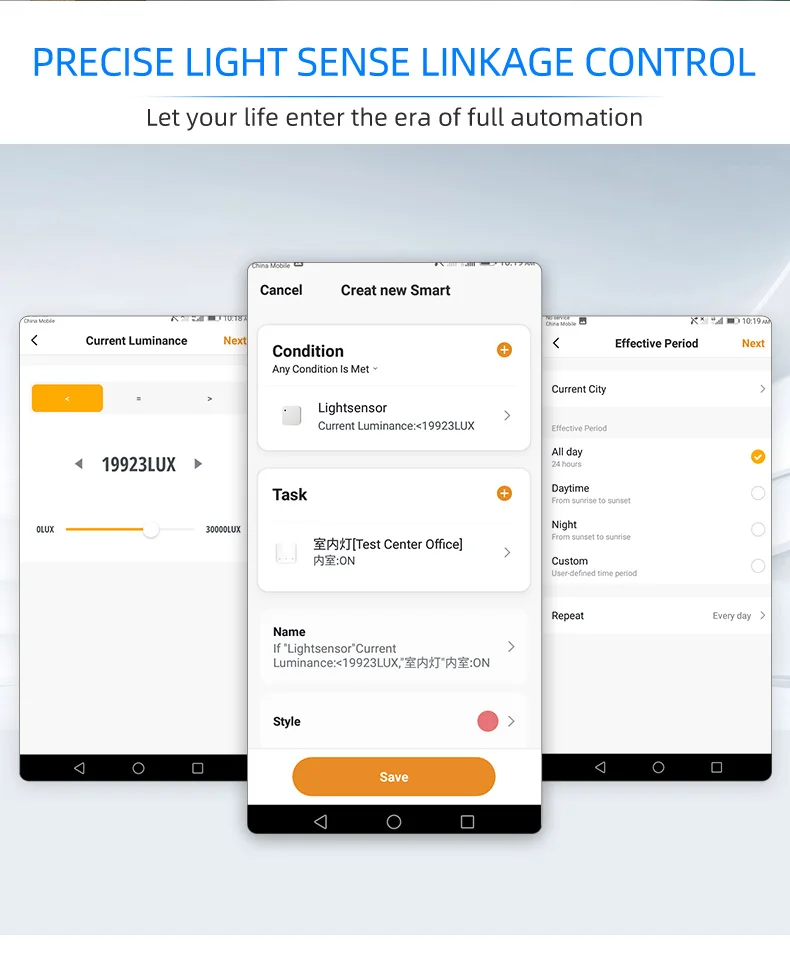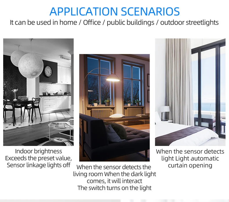 3. Conexión de detección de iluminación y brillo hogar inteligente, interruptor, lámpara, enchufe, motor, etc.