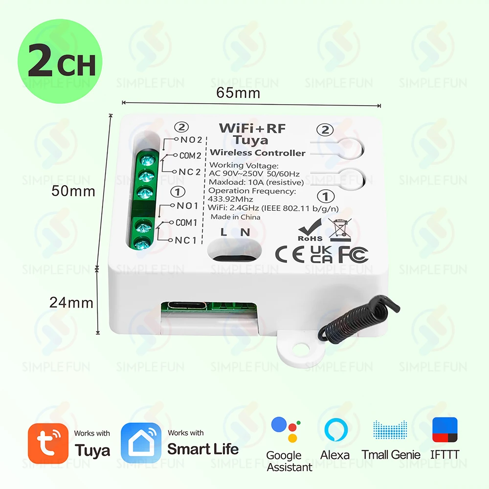 Tuya WiFi RF interruptor inteligente inalámbrico 110V 220V 230V 10A 2CH soporte de relé Alexa Google Home para luz de control remoto lámpara de Motor de garaje bomba de ventilador LED...