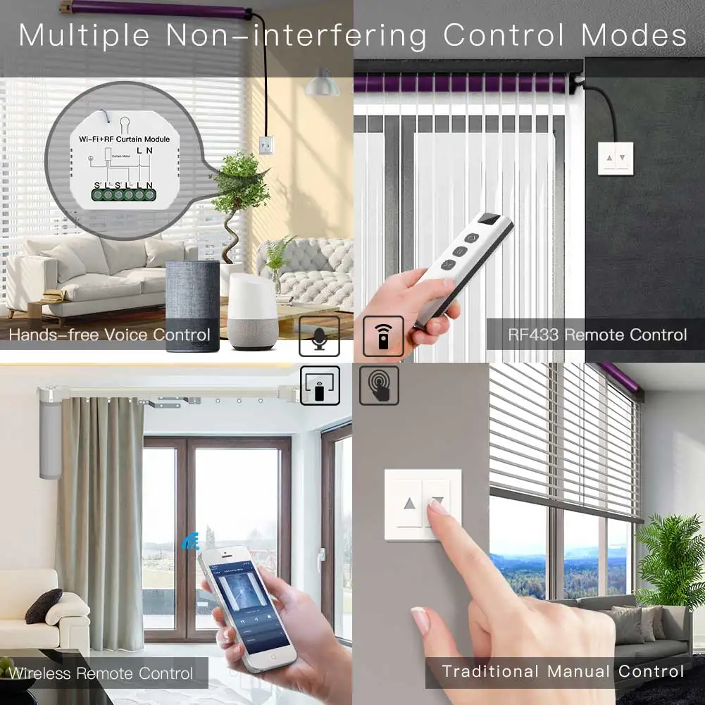 Módulo de interruptor de cortina inteligente WiFi DIY RF433 para Motor de persiana de persiana de rodillos motorizados eléctricos, Control remoto Smart Life/Tuya APP RF433, Compatible con Alexa Echo y Google Home