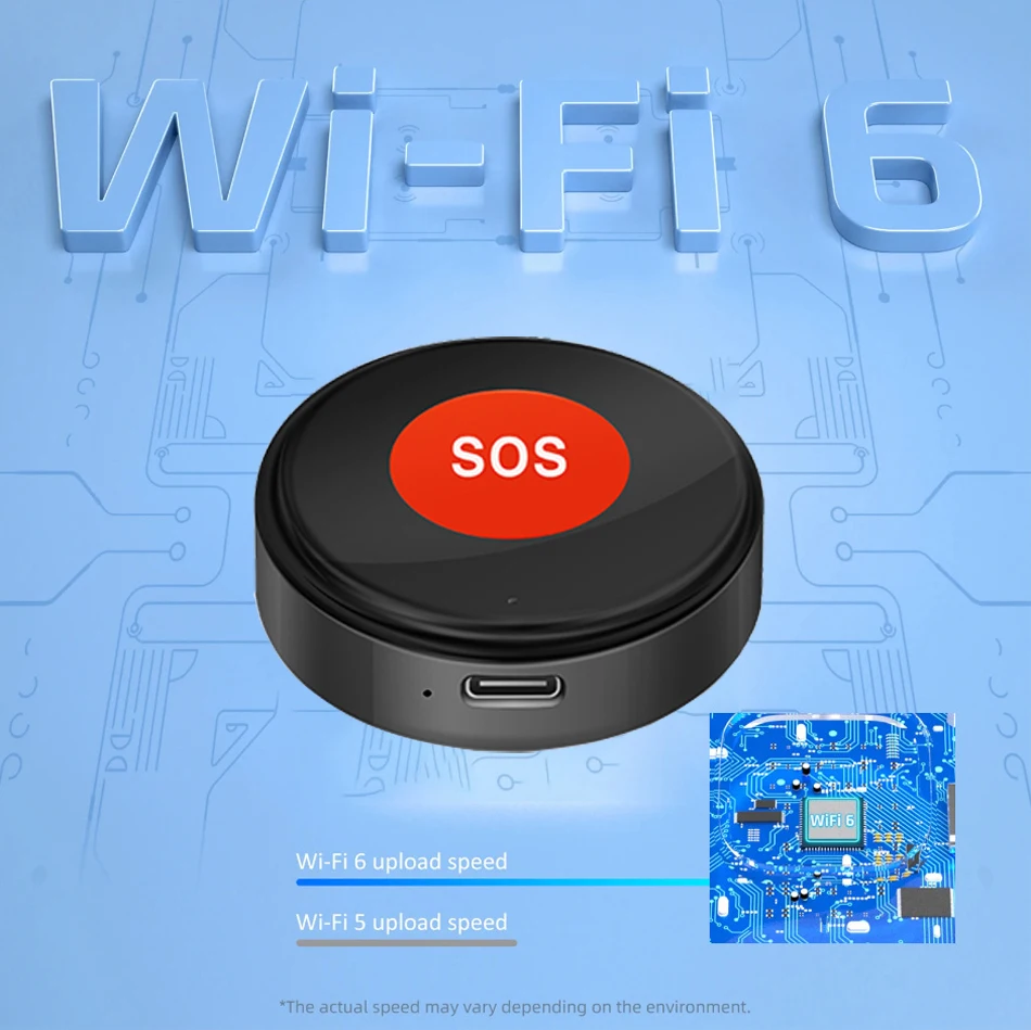 5.Botón de llamada inteligente para cuidadores, admite WiFi de 2,4 GHz y alcance inalámbrico de 10 m.
