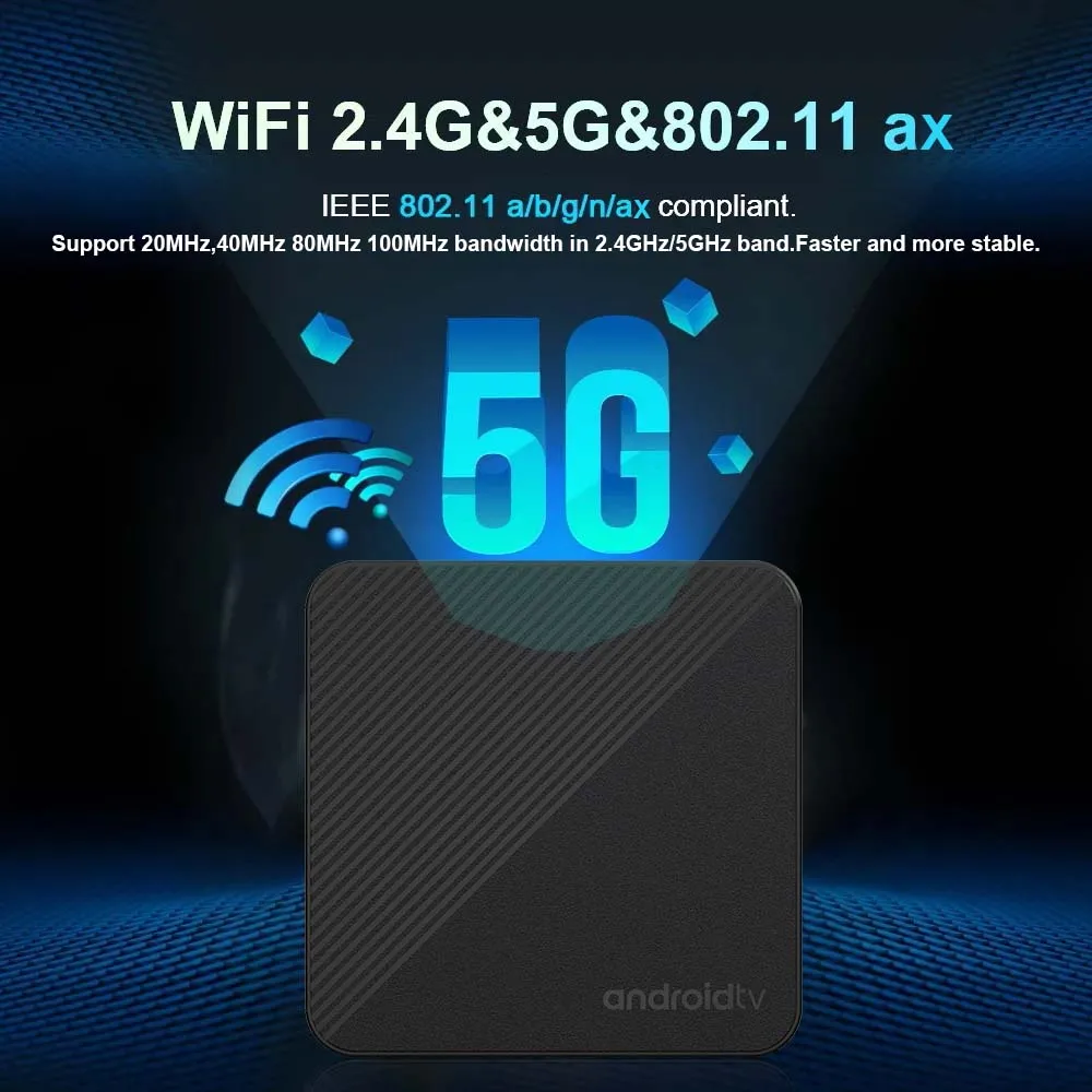 [Doble WIFI 2,4 G y 5 GHz] Caja Android T1S que utiliza WiFi 6, WIFI dual 2,4 G y 5 GHz, Bluetooth 5.0 integrado, compatible con LAN Ethernet de 100 M.