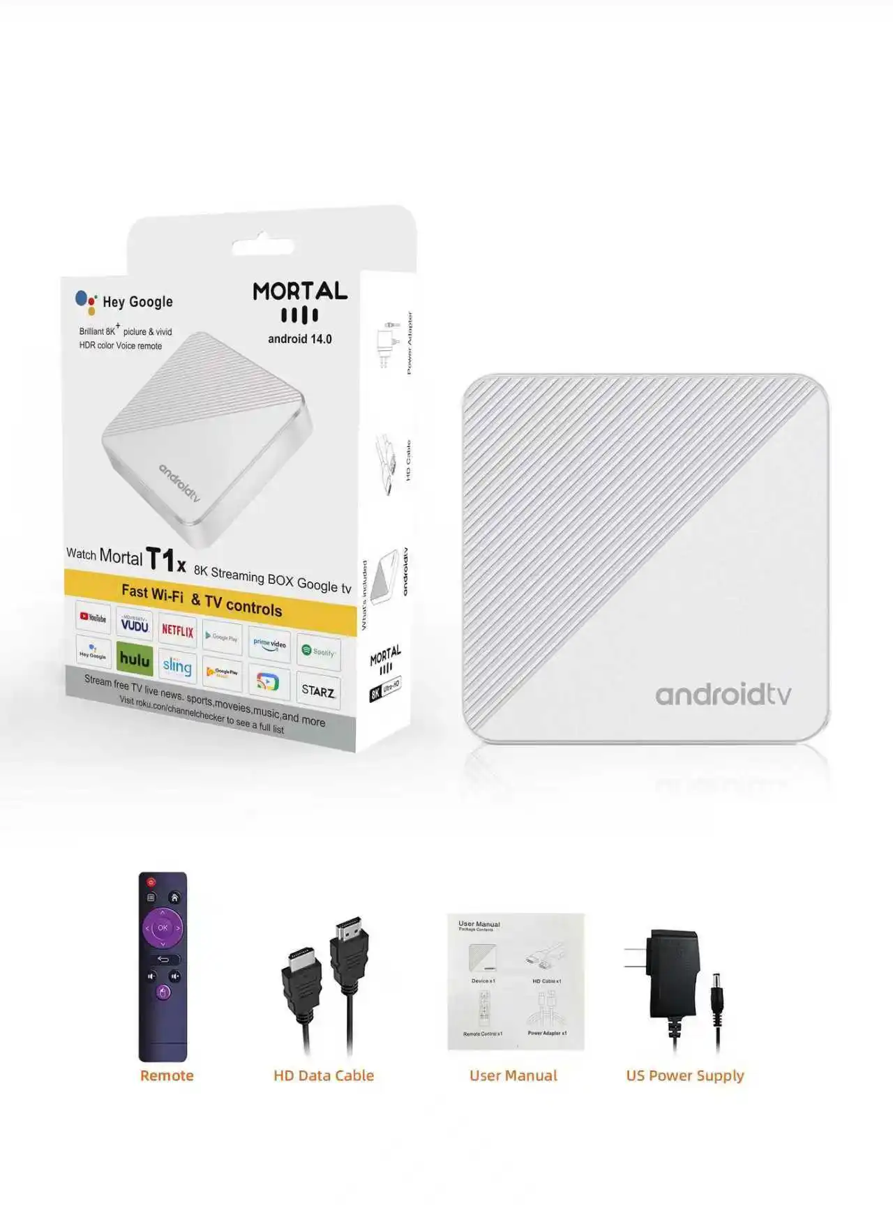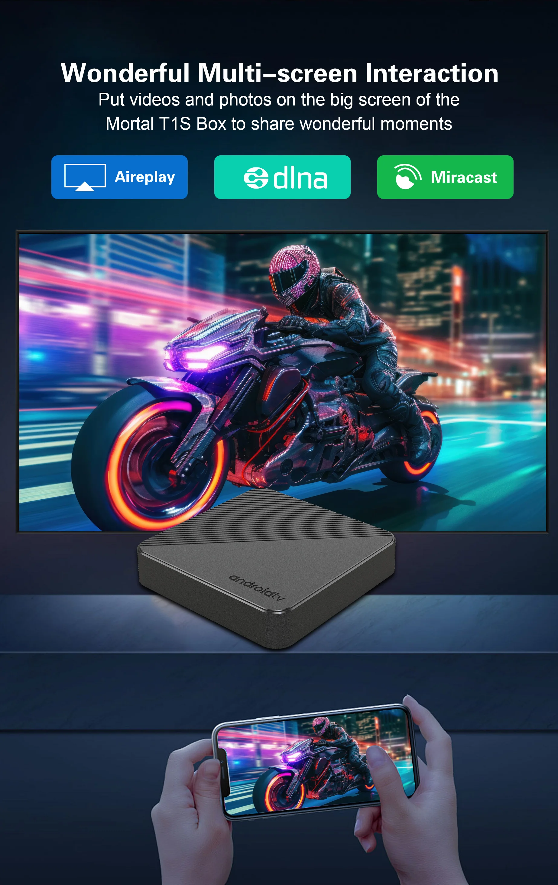 [Plug and play, cable HDMI incorporado] La caja de TV T1S es fácil de instalar y compatible con casi cualquier televisor con puerto HDMI.Para comenzar, simplemente conéctelo al puerto HDMI de su televisor, conéctese a Wi-Fi y comience.
