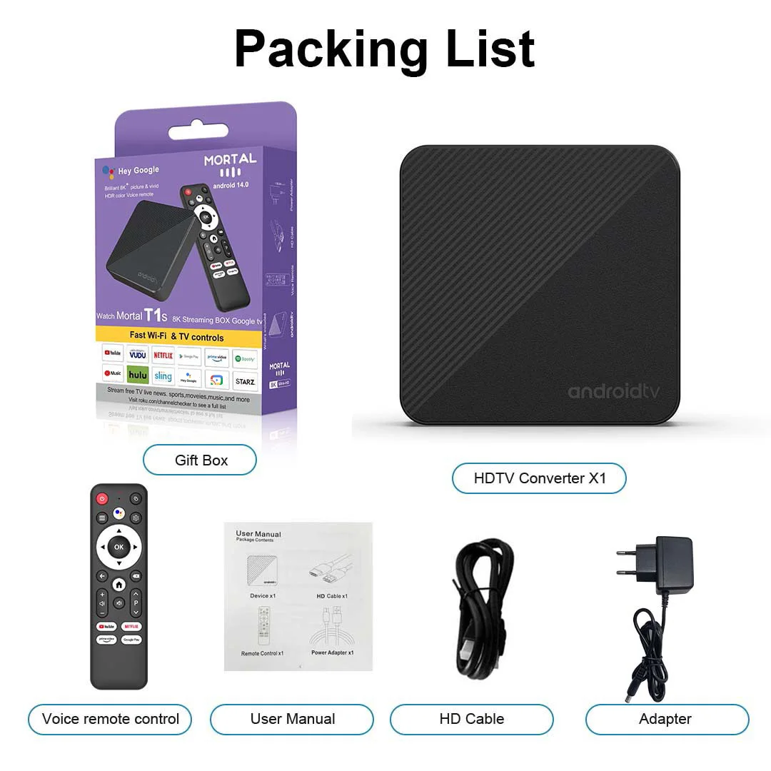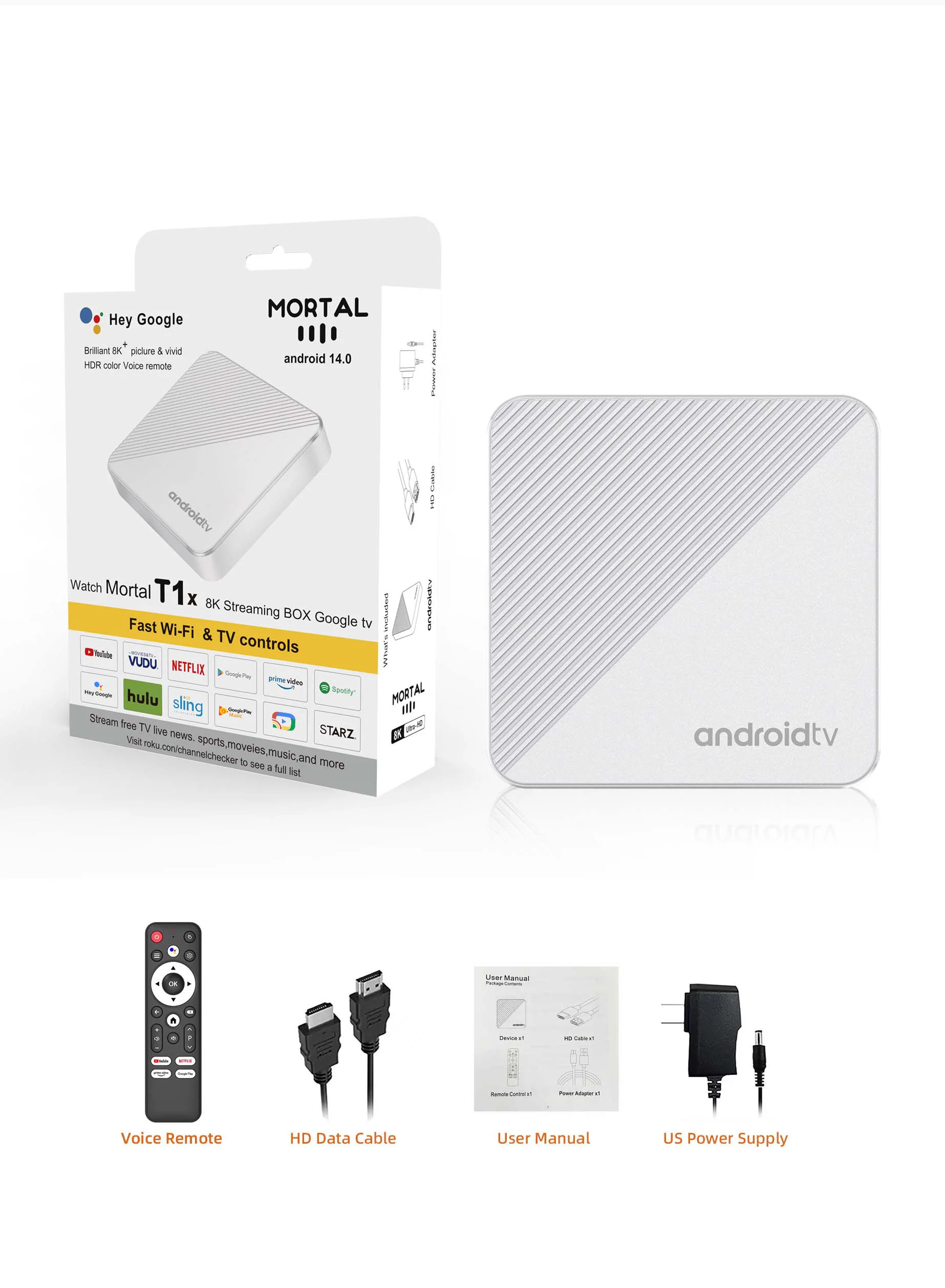 Wifi6 inteligente T1S TV Box Android14 Allwinner H313 Chip Quad-core 1000M Lan Bluetooth 5.0 Chromecast Streaming Media Player con Asistente de voz de Google
