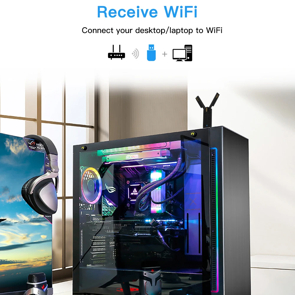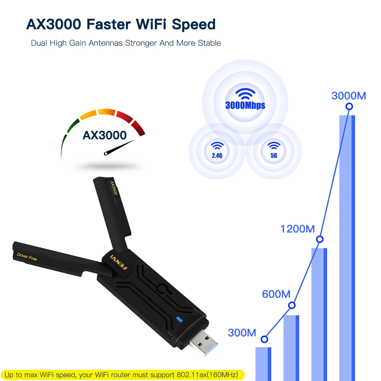 Comprar WiFi6E-adaptador WiFi USB 3,0 AX3000, tarjeta de red inalámbrica de 2,4G/5G/6GHz, Dongle, receptor Wlan para Win10/11, SIN controlador