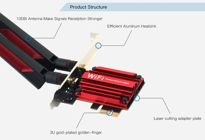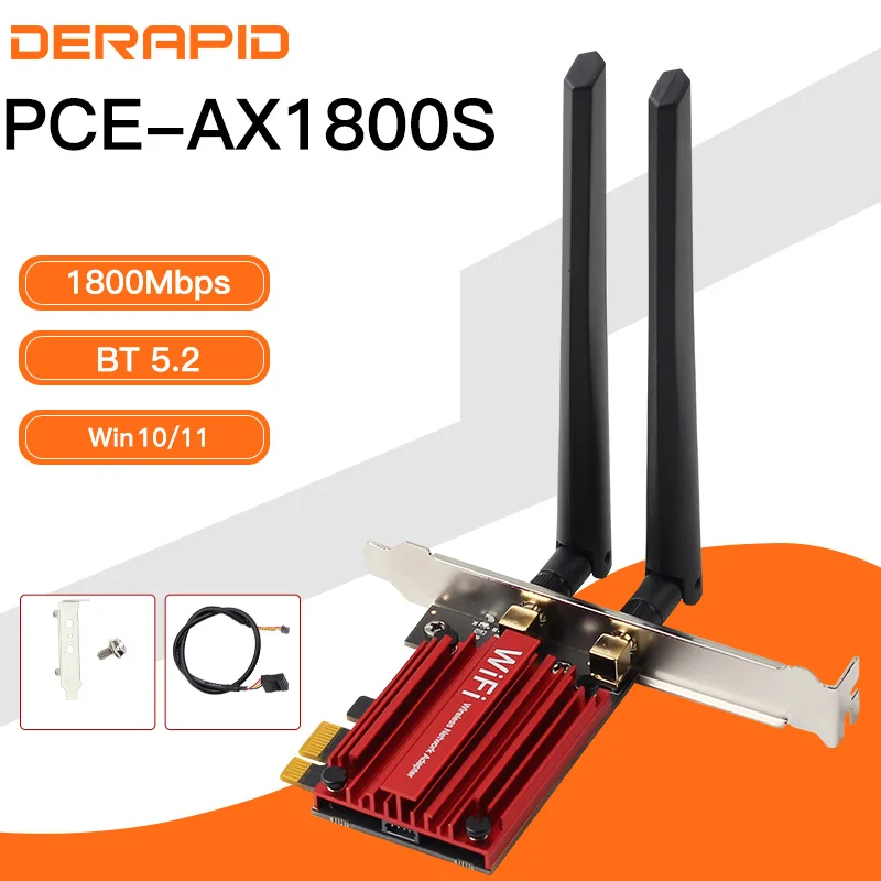 Inalámbrico 1800Mbps AX1800S PCIe Dual Band Wi-Fi 6 Adaptador Bluetooth 5,2 Red Wifi Tarjeta