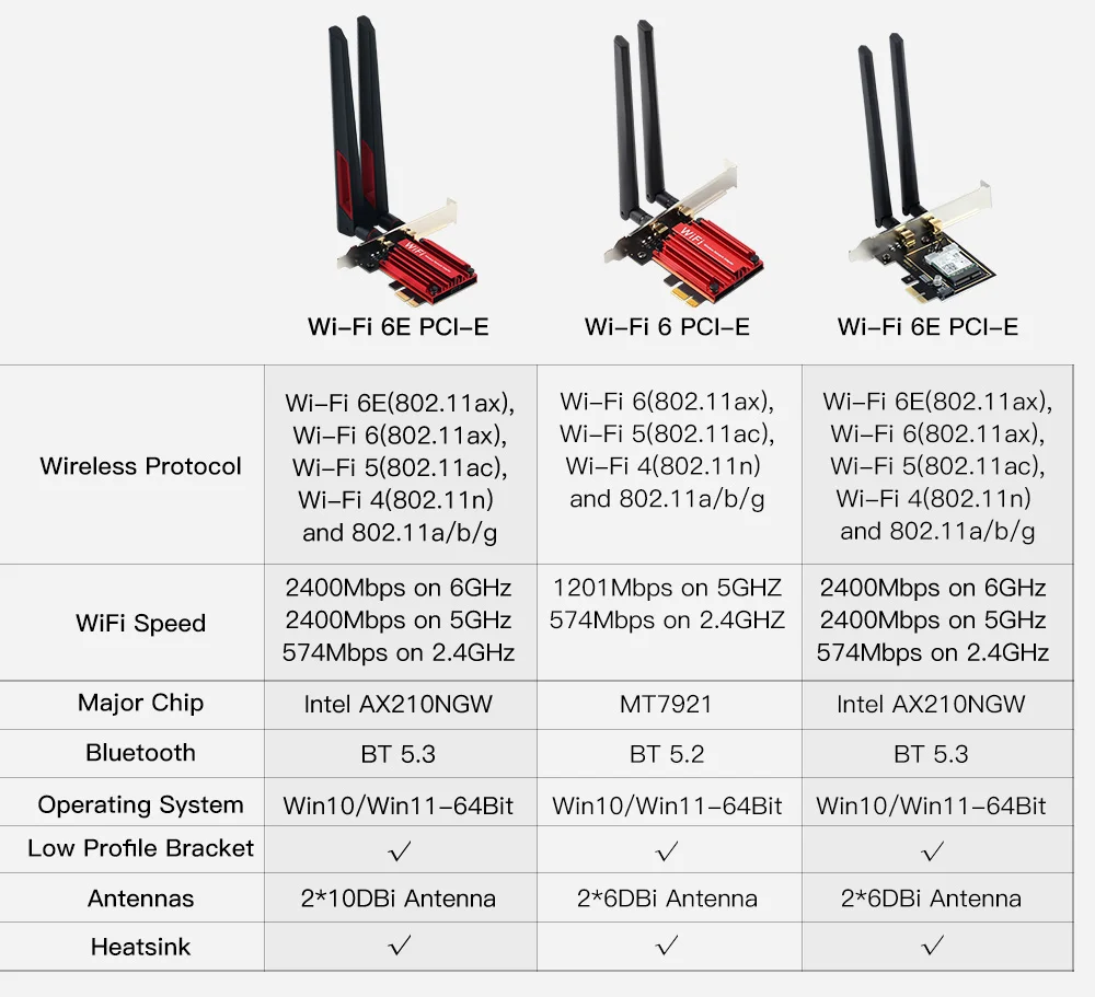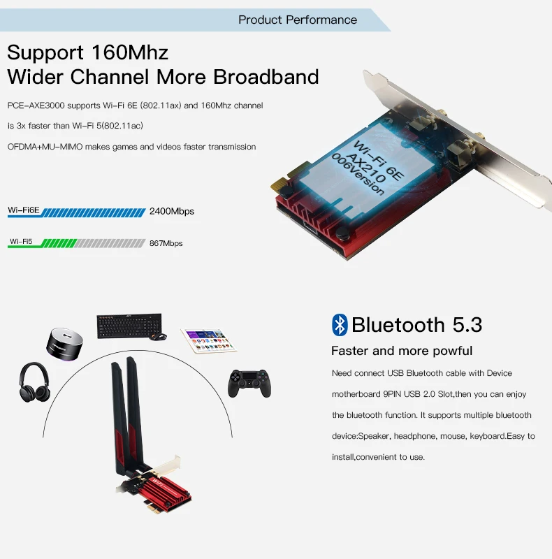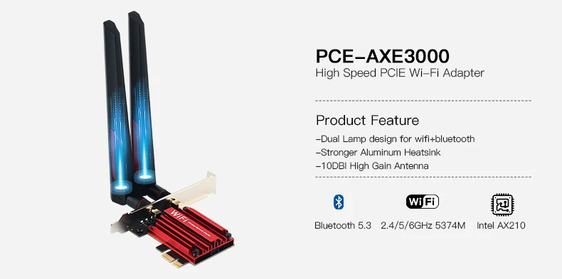 Comprar WiFi6E AX210 de 3000Mbps, adaptador de tarjeta de red inalámbrica, Bluetooth 5,3, banda Dual, 2,4G/5GHz/6GHz, WiFi, 802, 11AX/AC, PCI Express, PC