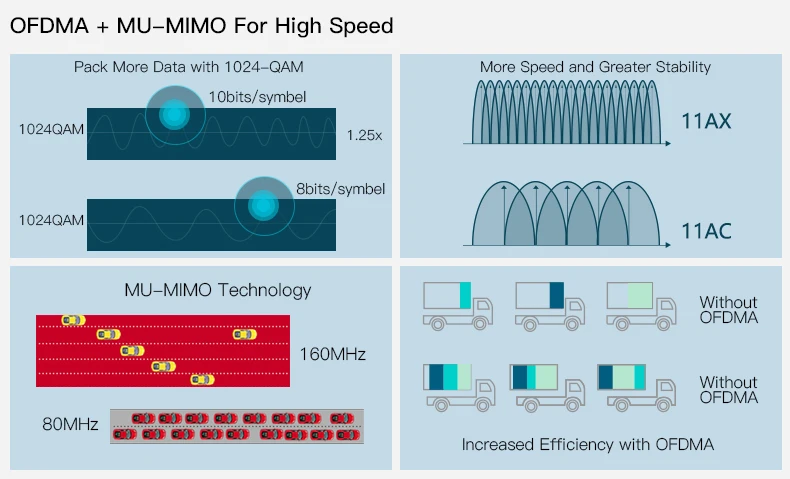 Velocidad de hasta 2400Mbps(5Ghz), Mbps 574 (2,4 Ghz)(el enrutador debe estar en 160Mhz, compatible con 802.11ax)