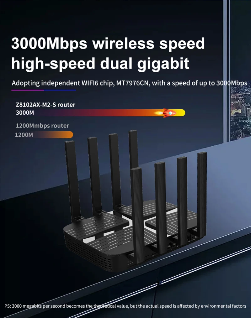 ● AdoptandoMT7981BChip, CPU de doble núcleo ARM Cortext-A53, con una frecuencia principal de hasta 1,3 GHz