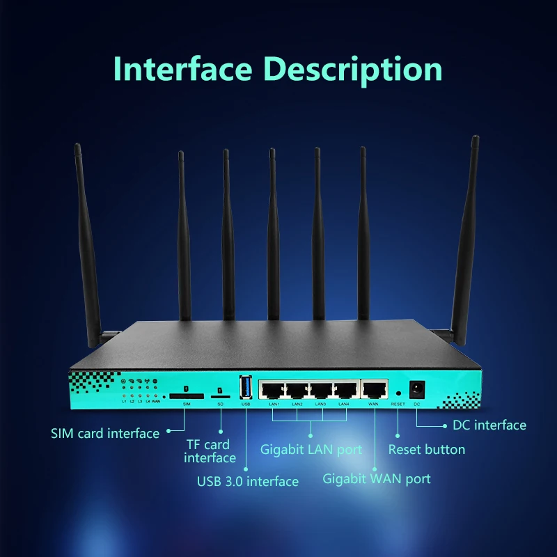 * 1 * Wan + 4*1000M Lan + 1 * USB 3,0 + 1 * tarjeta SIM + 1 * ranura SD