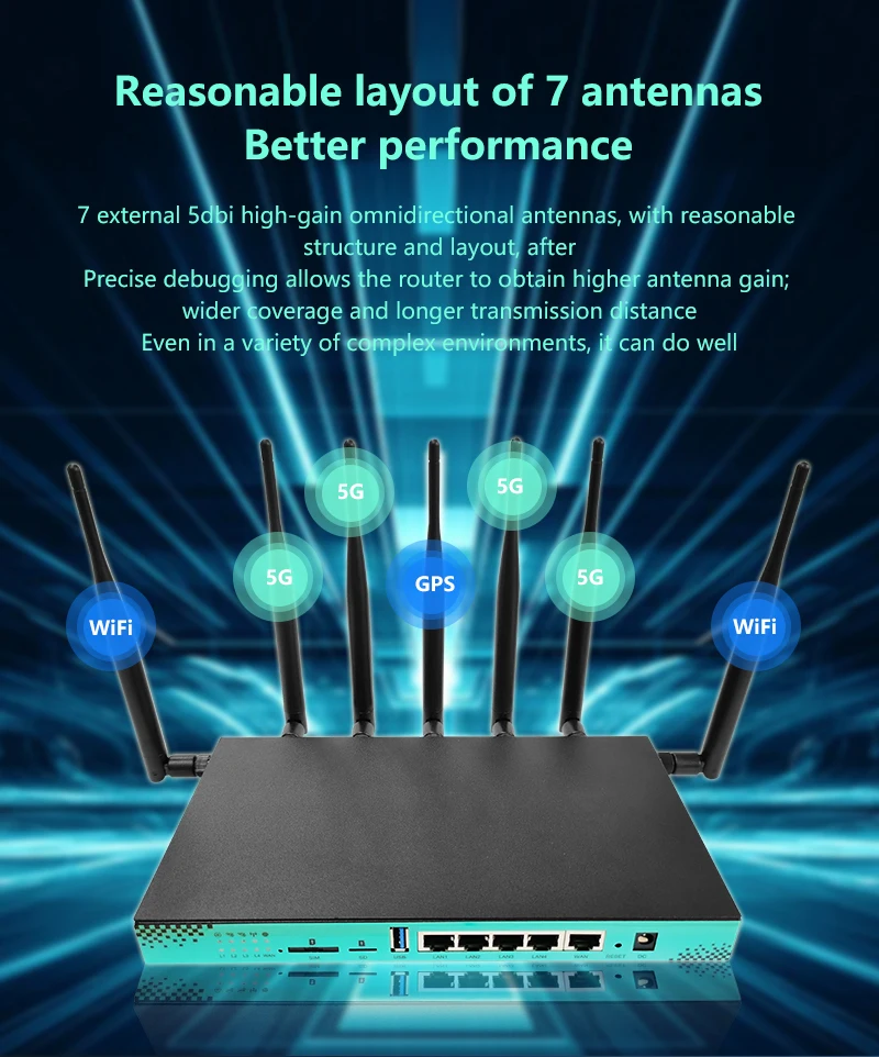 1200Mbps 4G 5G LTE Router inalámbrico WIFi 2,4G + 5GHz Hogar CAT12 CAT6 LTE Módem Ranura para tarjeta SIM 4 * Gigabit LAN PCIE M.2 USB3.0 1 * WAN 5 * DBI antenas