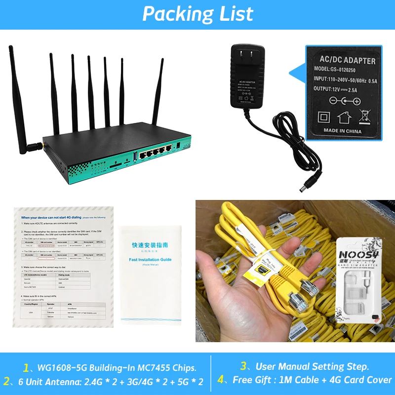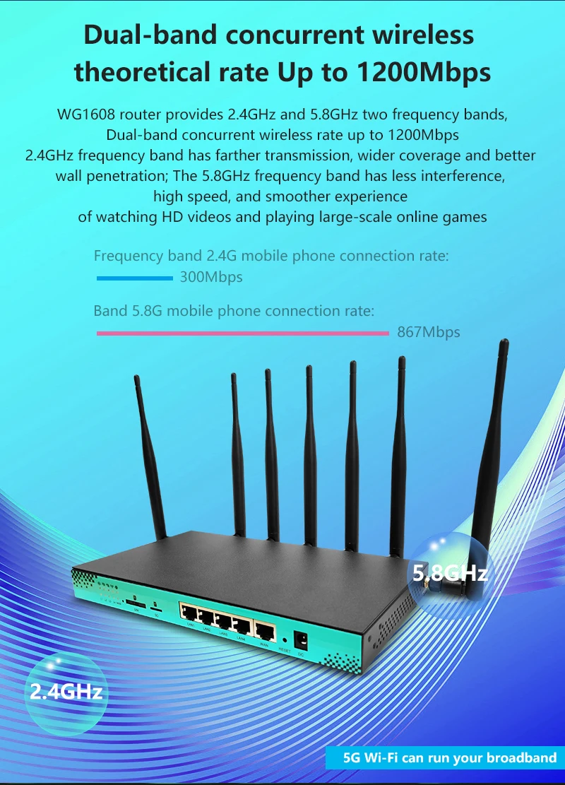 Comprar Wiflyer-enrutador 5G, tarjeta SIM de 1200Mbps, M.2, ranura PCIE, LTE, 2,4G, 5,8 GHz, WiFi inalámbrico, 4 x LAN, GPS, Openwrt, 256MB, 16MB, Flash