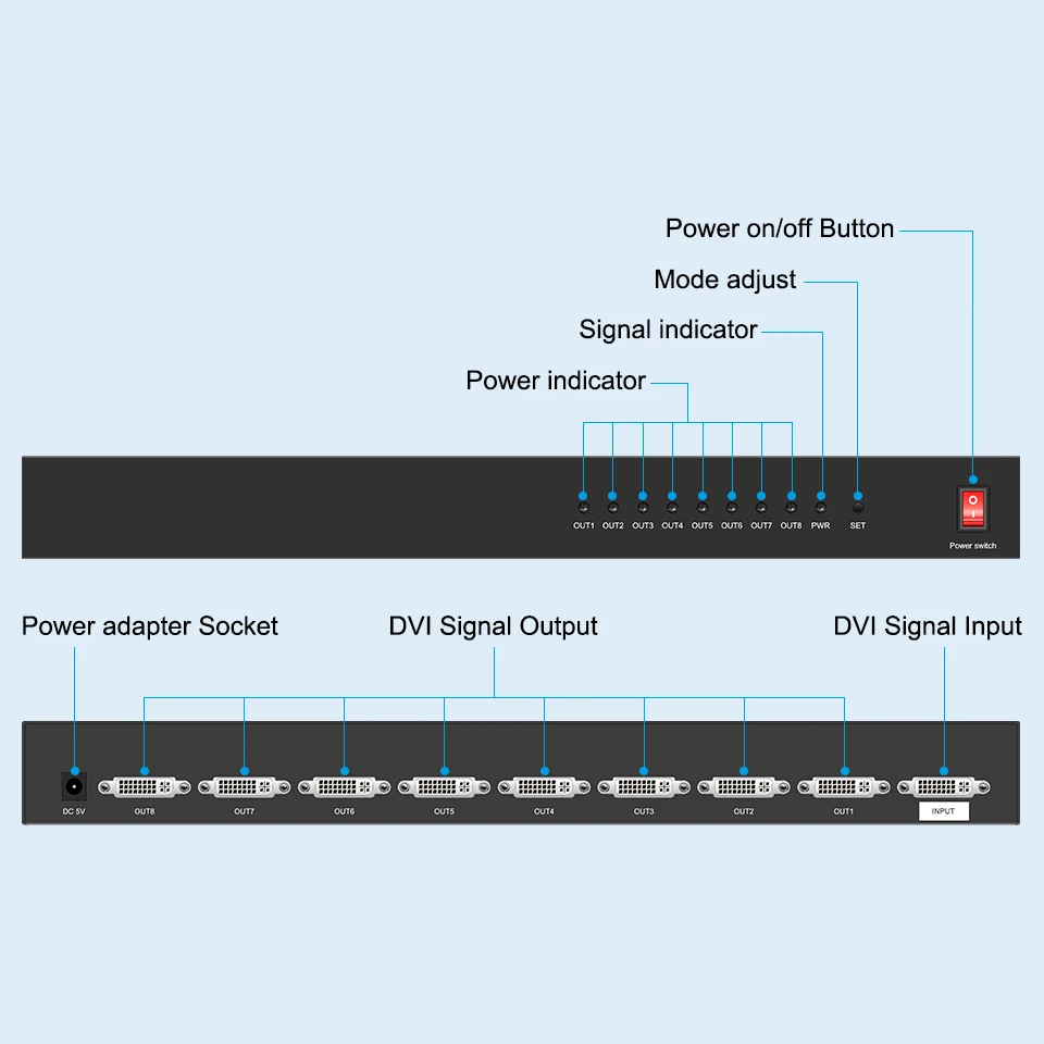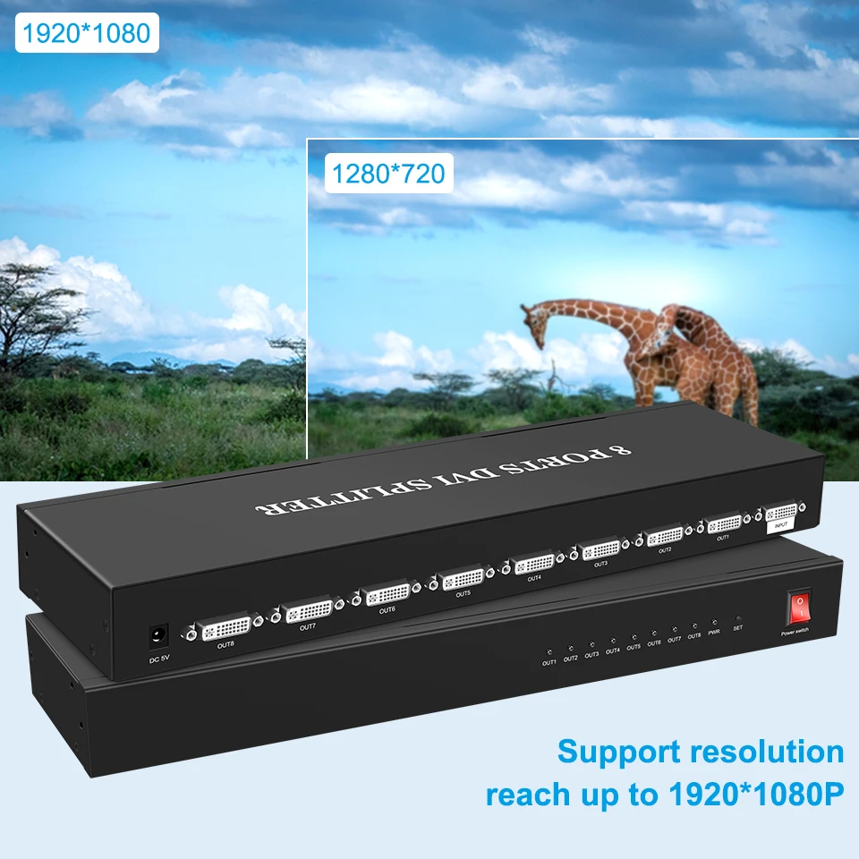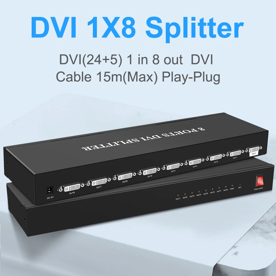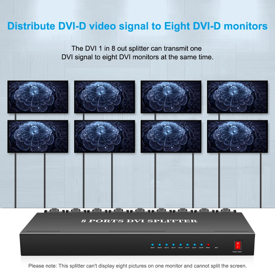 Divisor Wiistar DVI 1X8 Distribuidor DVI-D 1 En 8 Salida1920x1440para placa gráfica de computadora de monitor de proyector