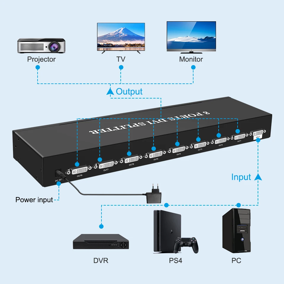 Comprar Wiistar DVI Splitter 1X8 DVI-D Distribuidor 1 En 8 Salida 1920x1440 para proyector monitor tarjeta gráfica de computadora
