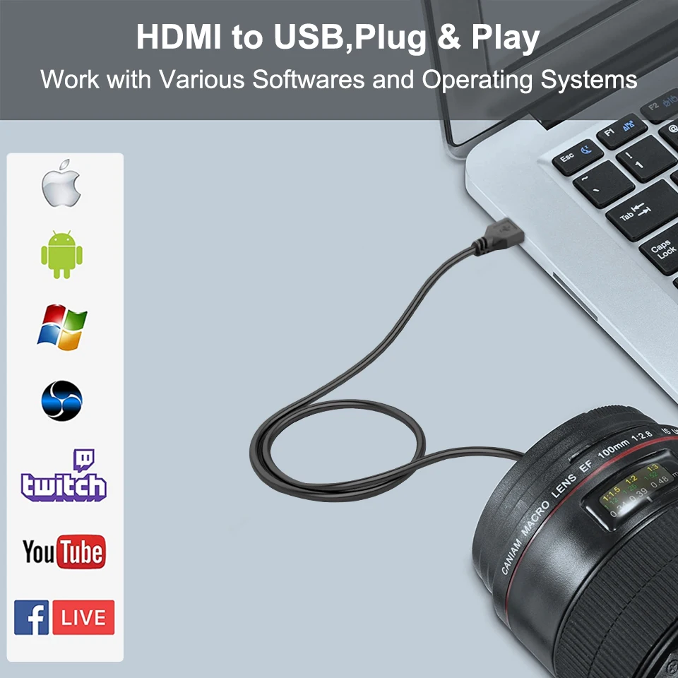 * Compatible con la mayoría de software de adquisición, como VLC, OBS, Amcap, etc.