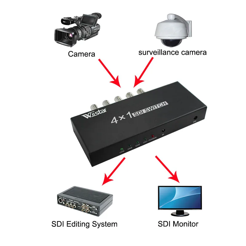 Comprar WiistarSDI 4*1 Conmutador 4 canales Señal SDI a 1 canal de señal SDI Compatible con entrada y salida de señal Full HD SDI