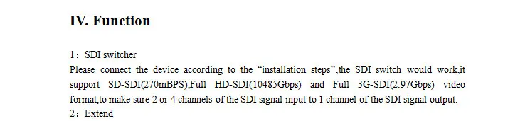 Este producto es un interruptor SDI (interfaz digital serie), puede cambiar la señal SDI de 4 canales a un canal de señal SDI y admite entrada y salida de señal SDI Full-HD, también es muy fácil de usar con alta estabilidad y confiabilidad..Y es ampliamente utilizado en todas las estaciones de televisión y otros lugares de trabajo, monitoreo de seguridad seguro, lugares de capacitación, etc.