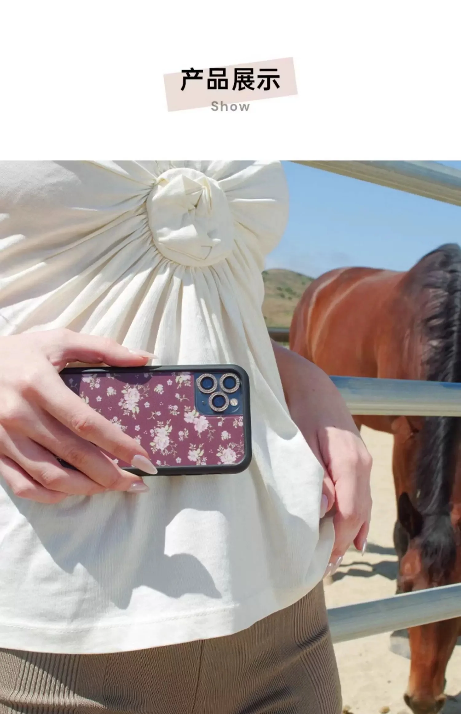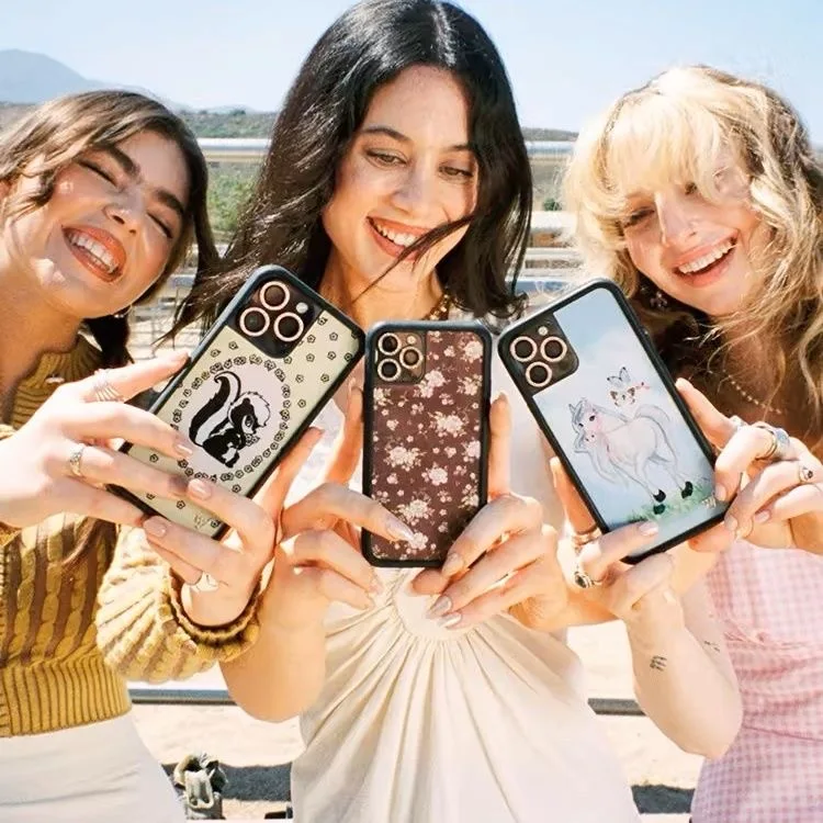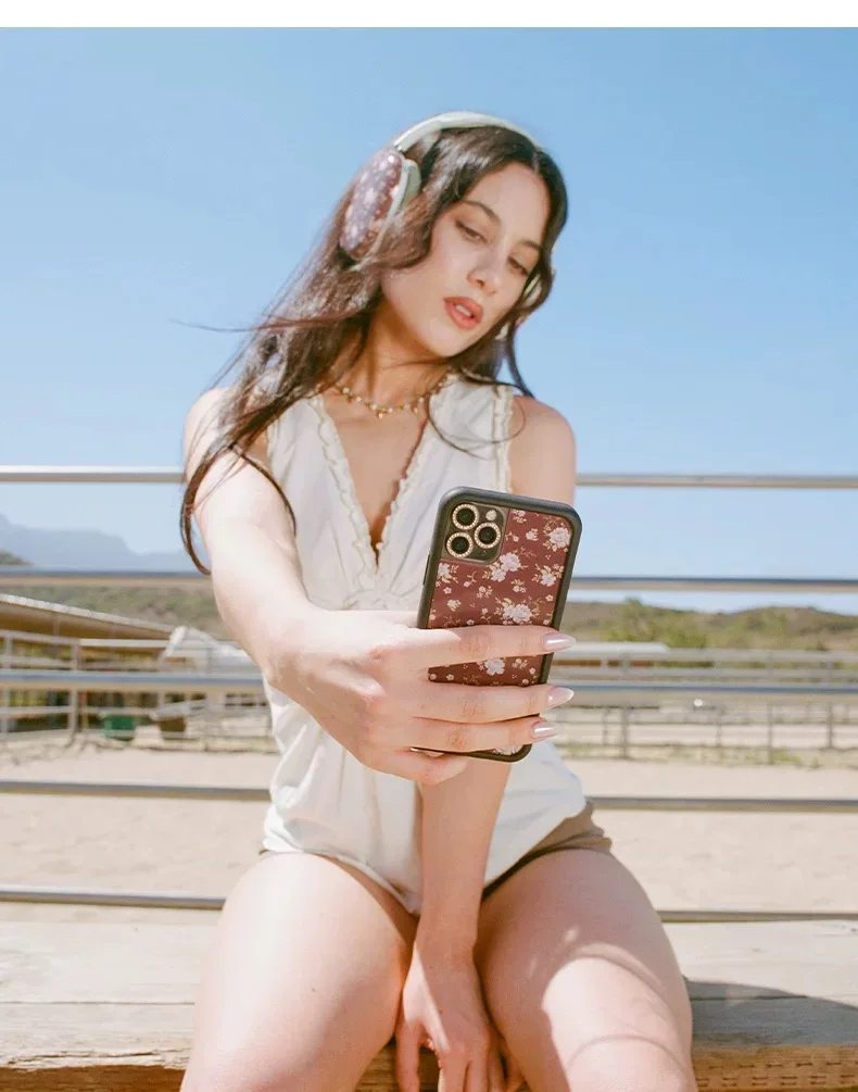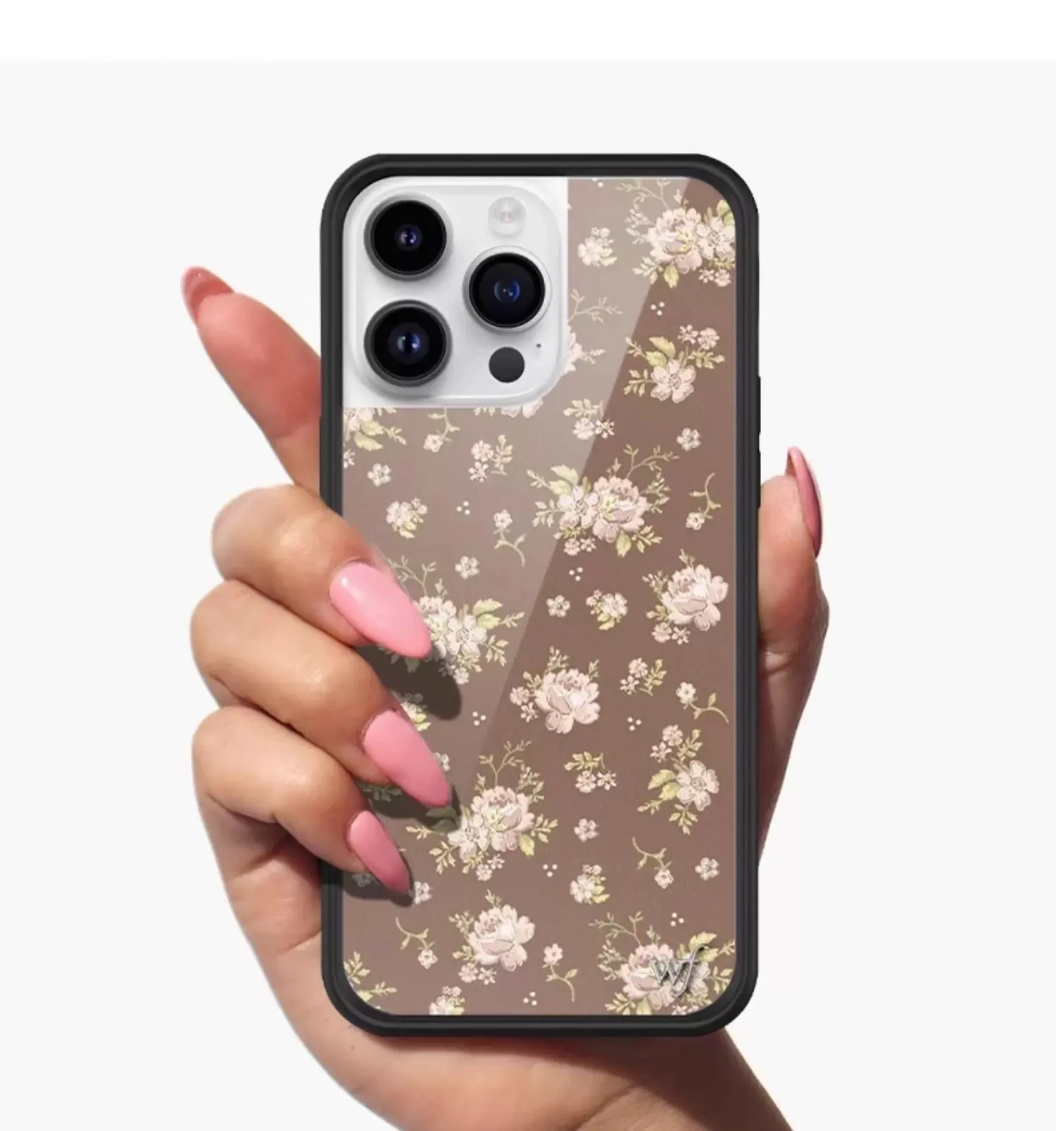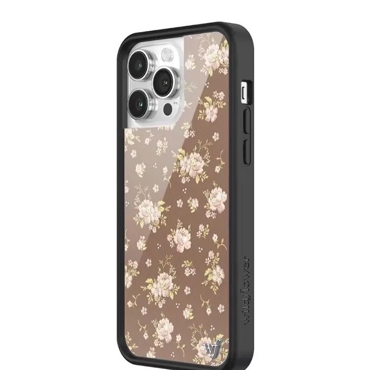 Comprar Wildflower-funda de teléfono dura con etiqueta de Metal 3D, carcasa de dibujos animados de flores y caballos, para iPhone 12, 13, 14, 15, 16 Pro Max, 15 Pro, WF