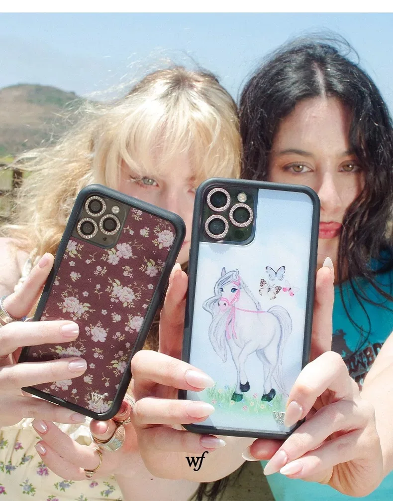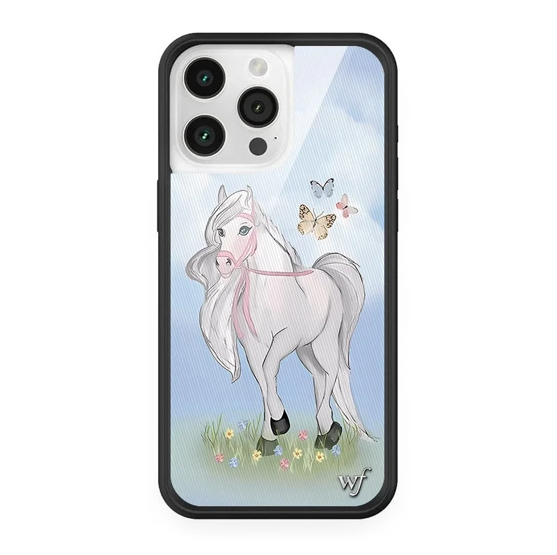 Wildflower-funda de teléfono dura con etiqueta de Metal 3D, carcasa de dibujos animados de flores y caballos, para iPhone 12, 13, 14, 15, 16 Pro Max, 15 Pro, WF