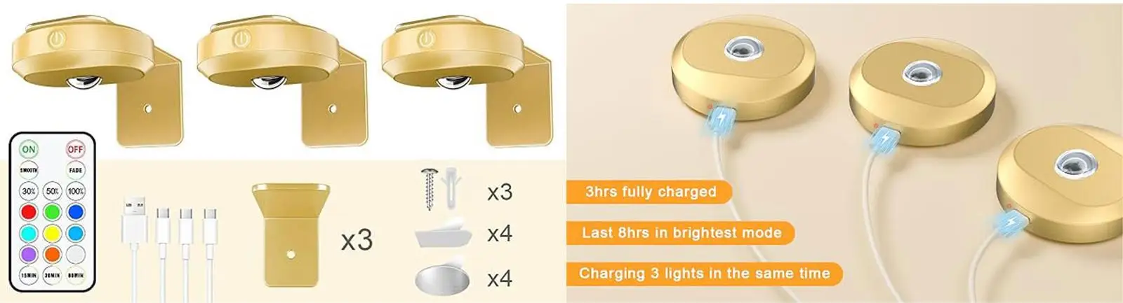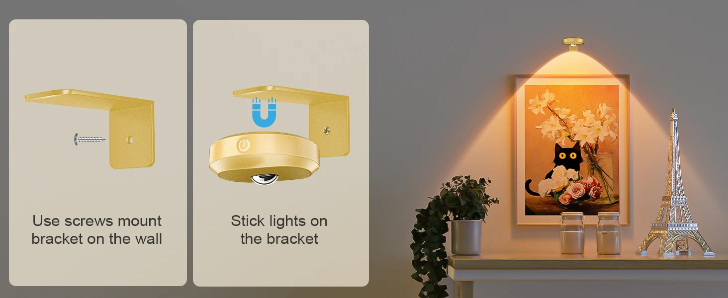Varias aplicaciones para paredes, cuadros, pinturas artísticas, armarios, debajo del mostrador, guardarropas, debajo del gabinete, sótano, alacenas, estanterías, etc.