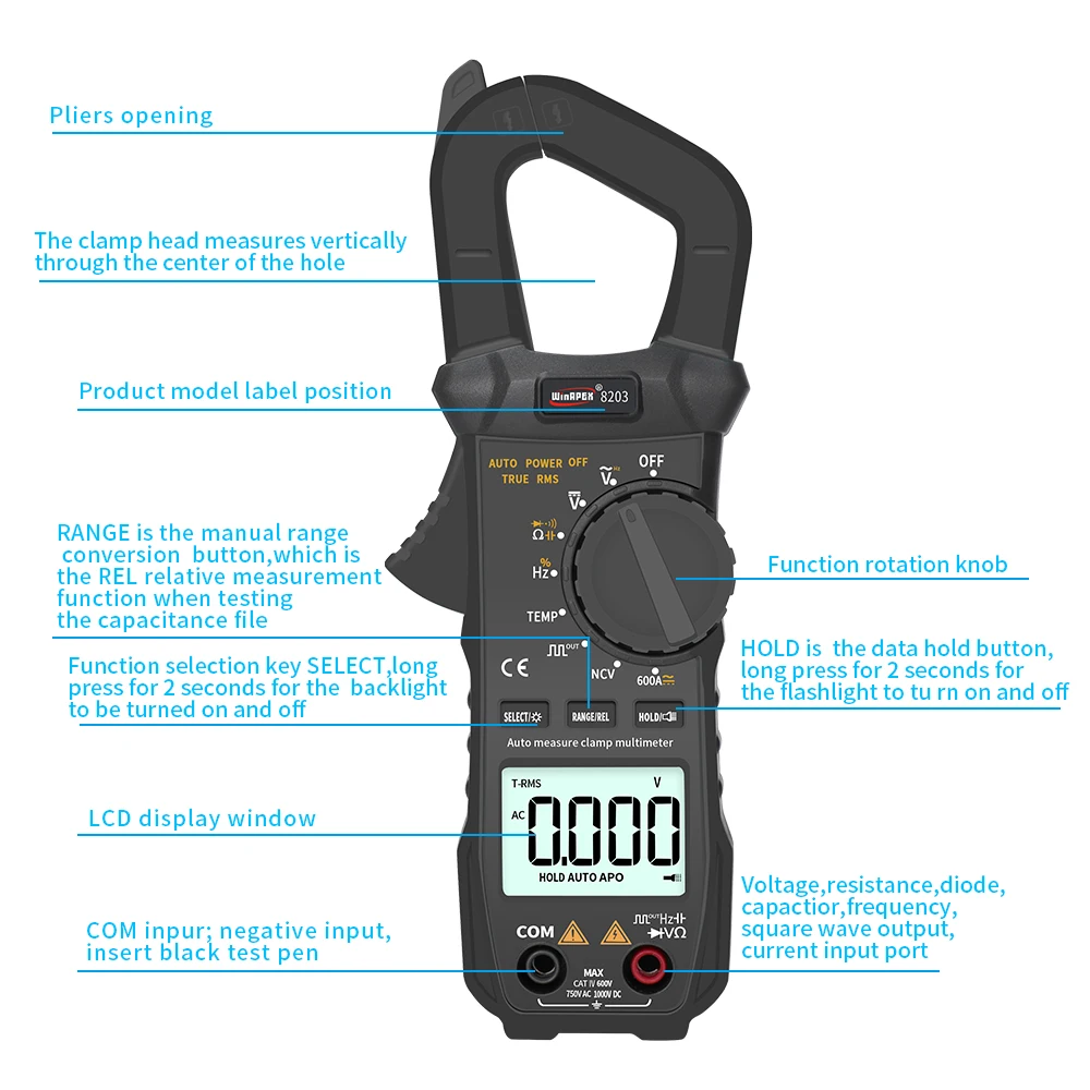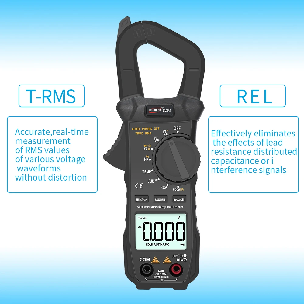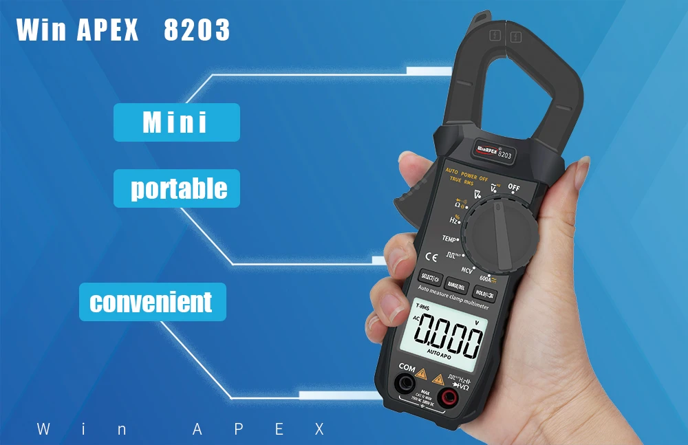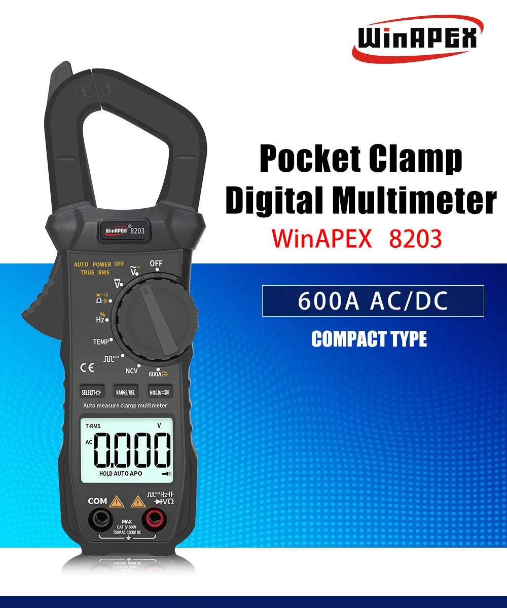 • Alta precisión:El medidor de abrazadera de bolsillo WINAPEX ET8203 600A AC DC Proporciona lecturas precisas de corriente, voltaje, resistencia y temperatura de diodo, lo que lo convierte en una herramienta confiable para trabajos eléctricos.