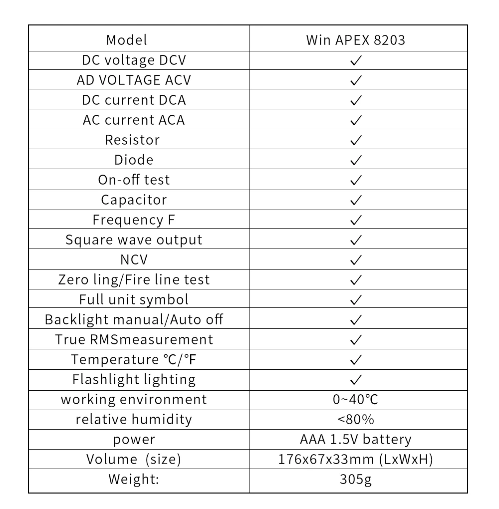 • Fácil de usar:Con su diseño simple y su interfaz fácil de usar, el medidor de pinza de bolsillo WINAPEX ET8203 600A AC DC es fácil de usar, incluso para principiantes.