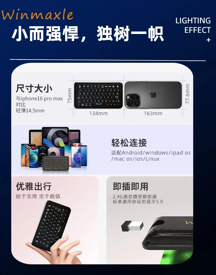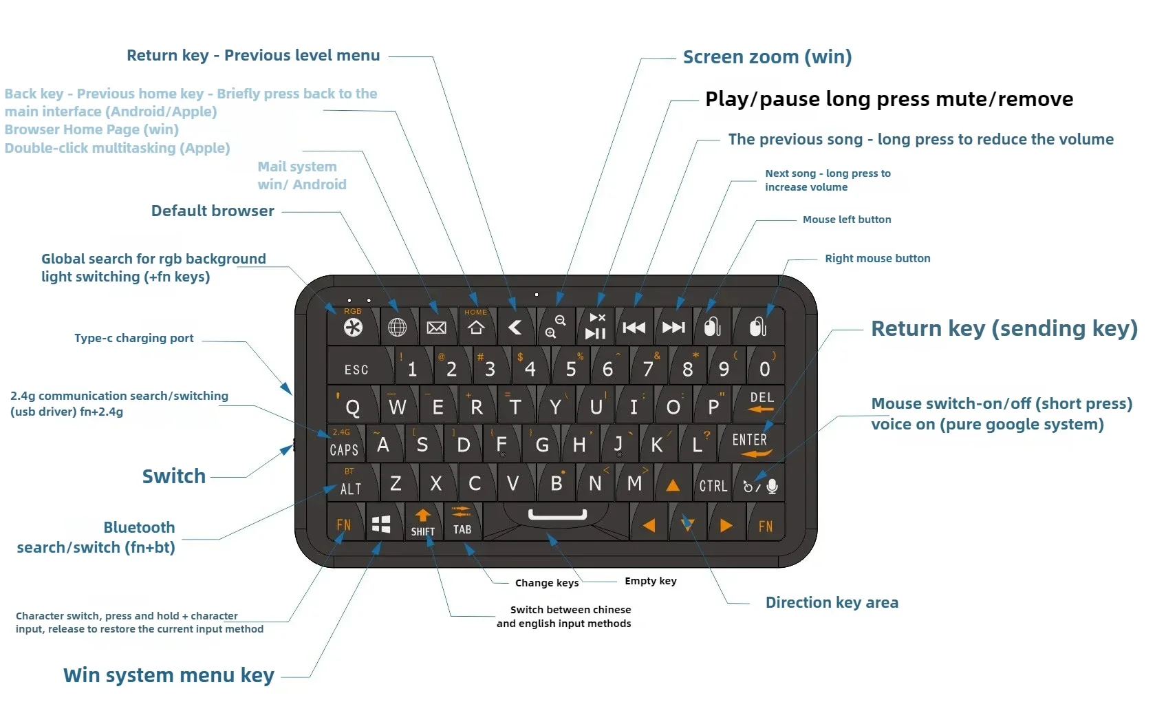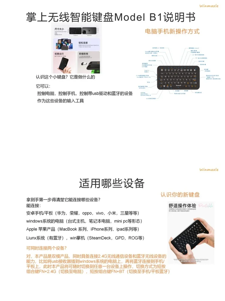 Comprar Winmaxle Modelb1 Mini teclado de mano Compatible con múltiples sistemas de mano inalámbrico Bluetooth teclado inteligente portátil