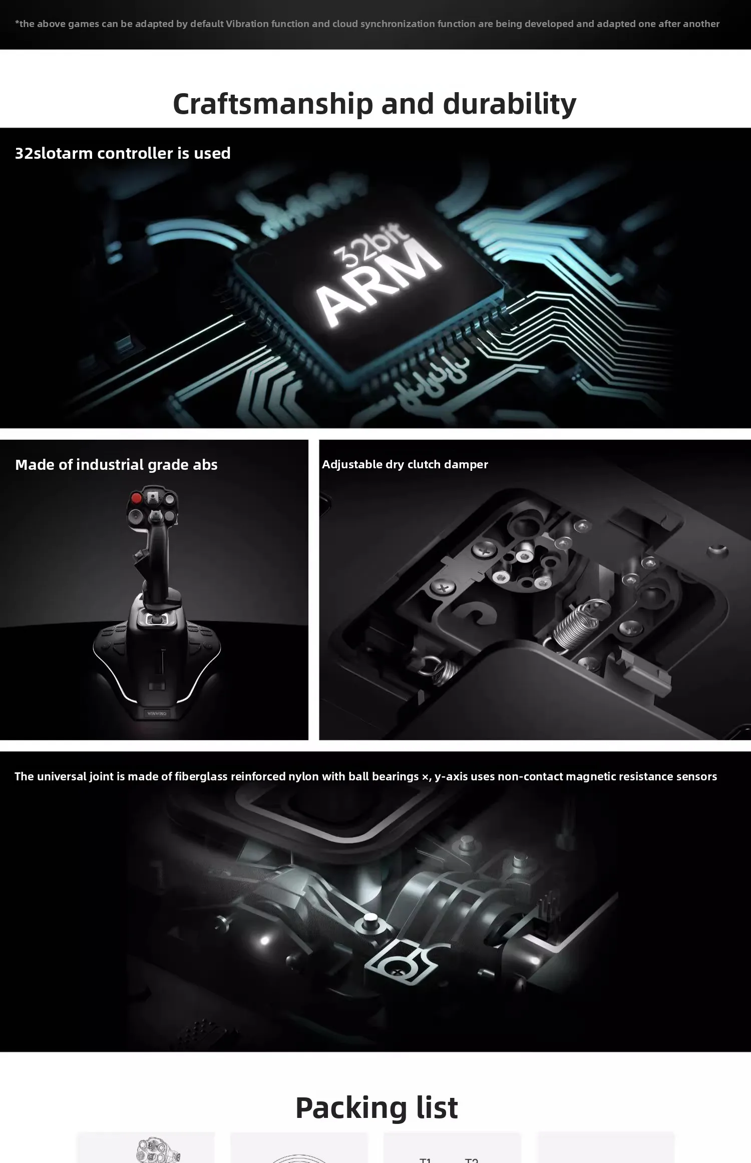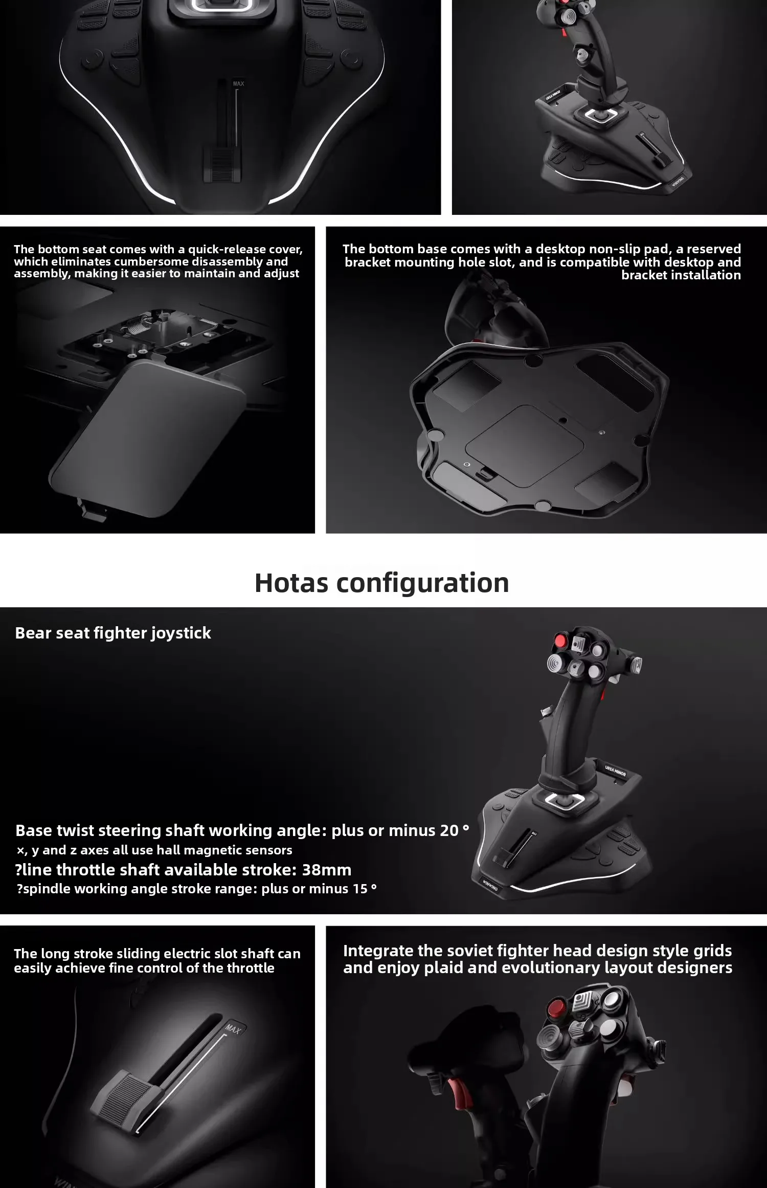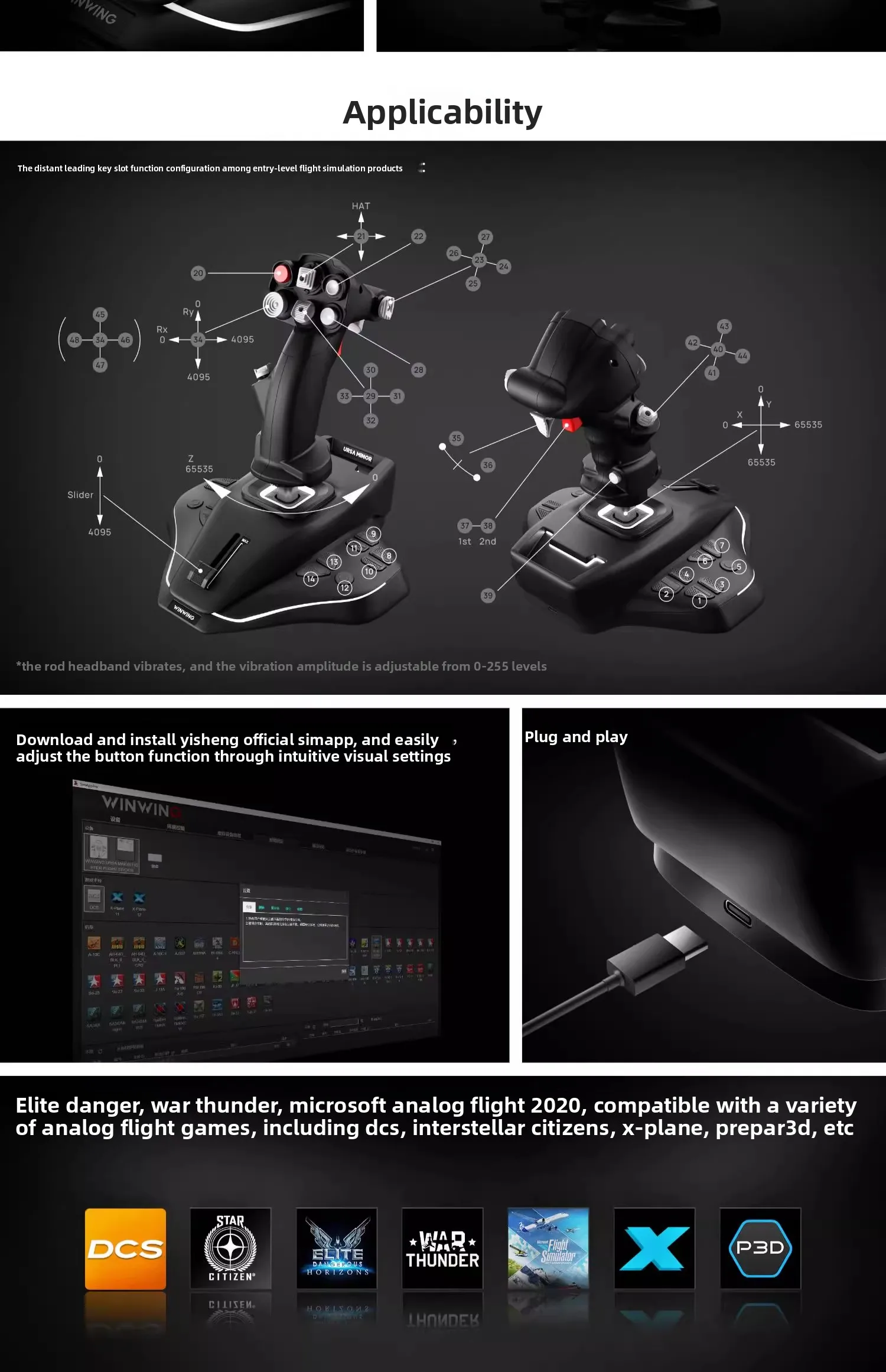 - Compatible con varios juegos de vuelo de simulación, incluidos DCS, Star Citizen, Elite Dangerous, War Thunder, etc.
