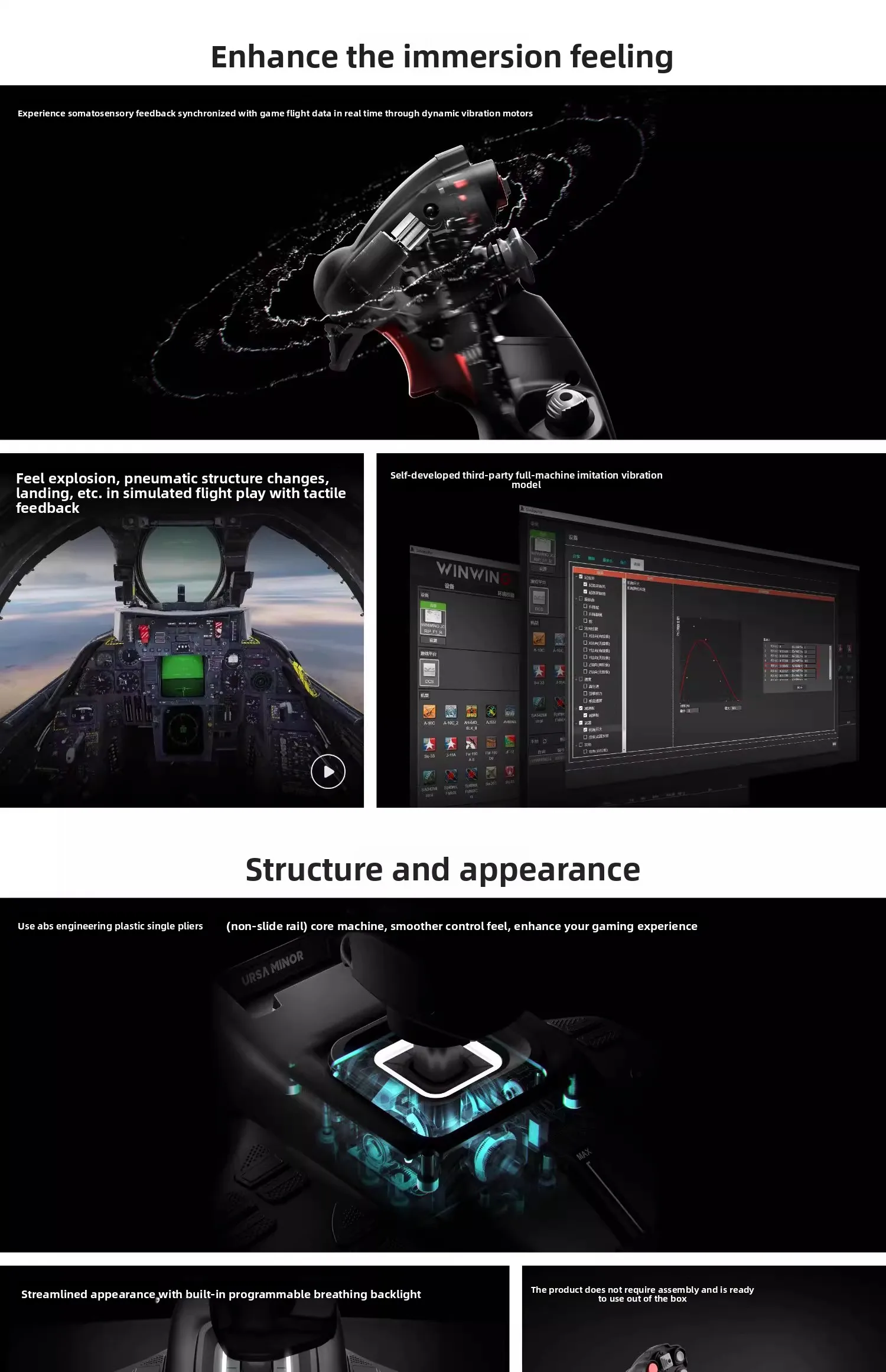 - Experimente la sincronización en tiempo real de los comentarios de movimiento con datos de vuelo del juego a través de motores de vibración dinámica.