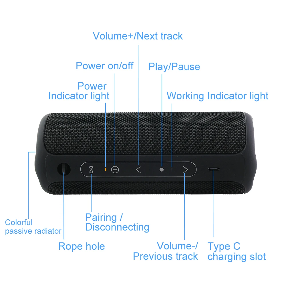Portable bluetooth speaker with 2 way speaker system, brings you loud, crystal clear and powerful sound: The dual way speaker design provides excellent low and mid range sound, while the independent tweeter produces crisp and clear high frequencies. P3 also features high-quality low-frequency radiators at both ends, which can effectively enhance bass and deliver deep bass.