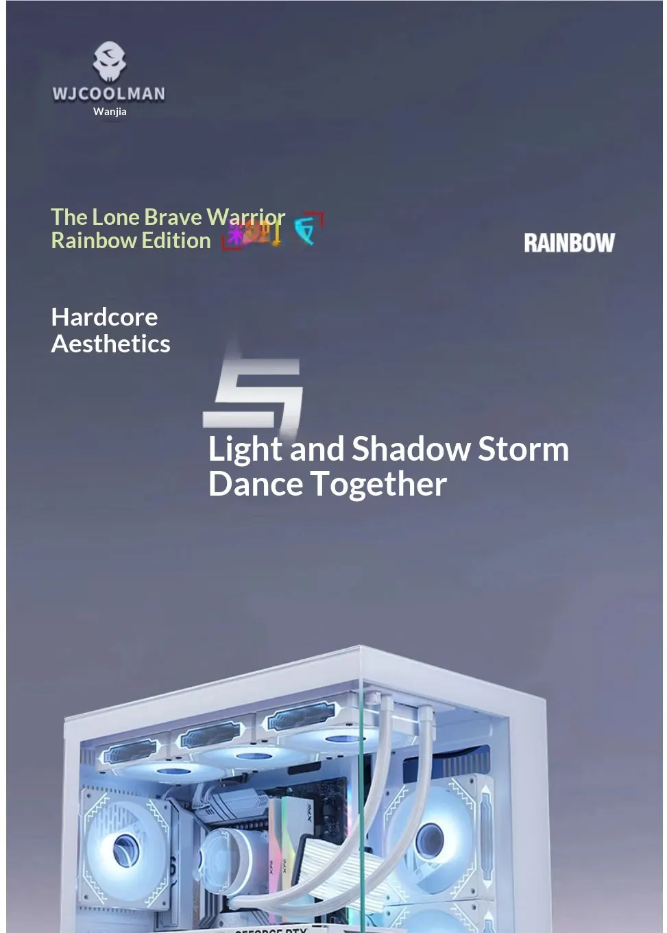WJCOOLMAN Lonely Warrior Rainbow Edition Ocean View Room Caja de computadora compatible con refrigeración por agua 360/tira de luz ARGB