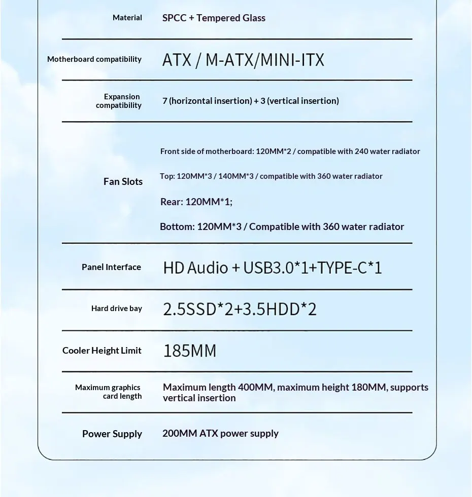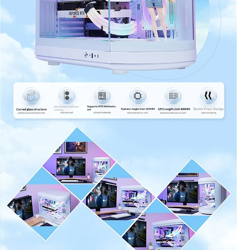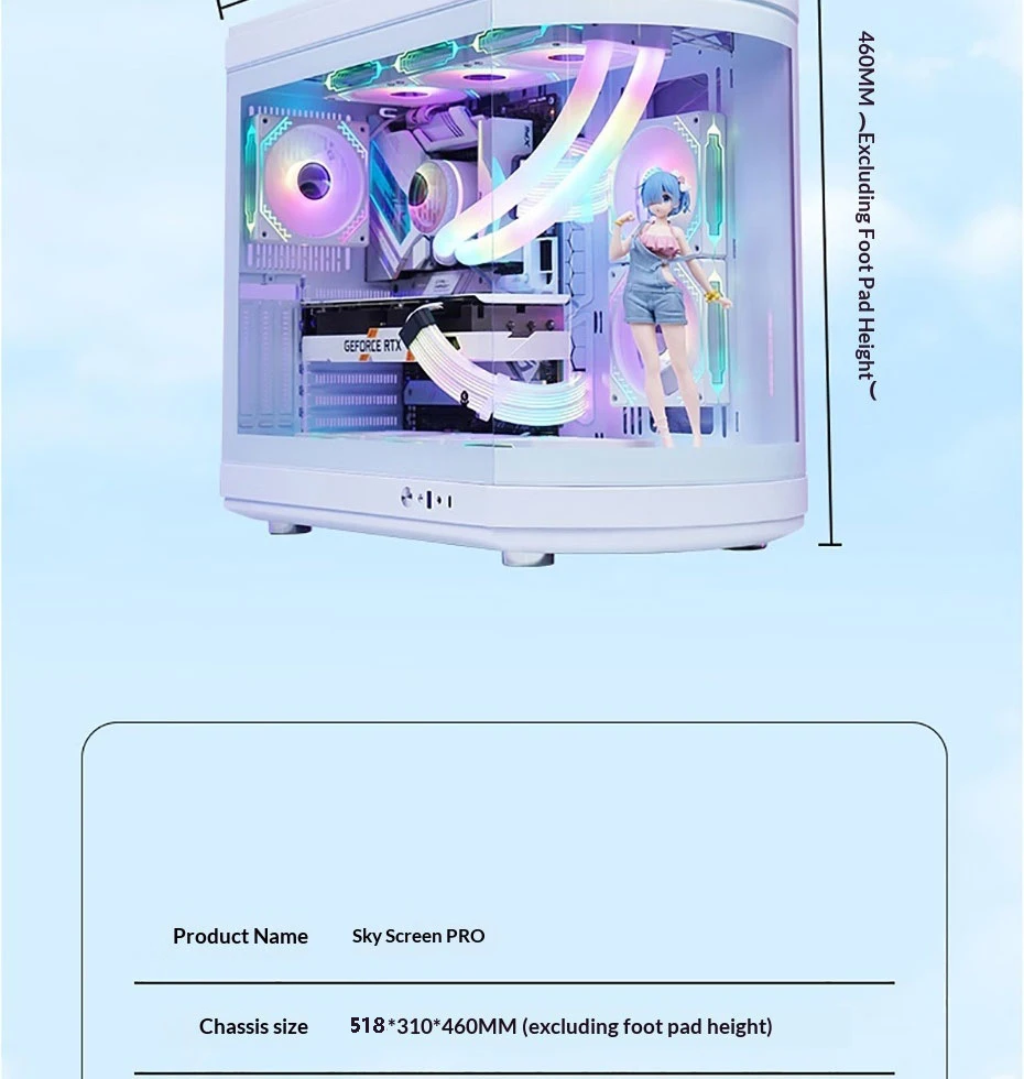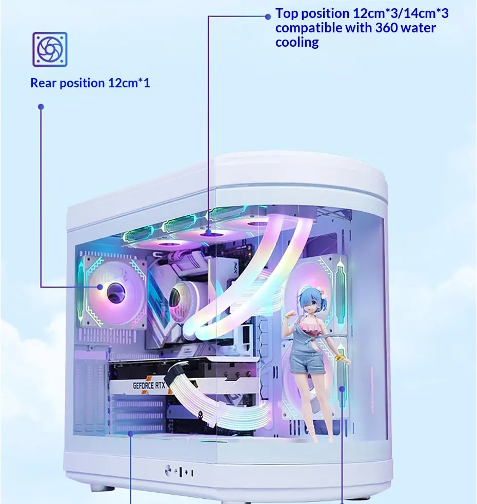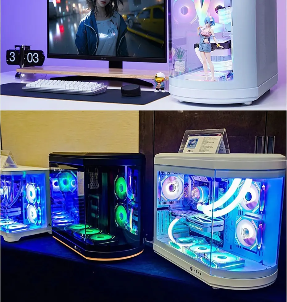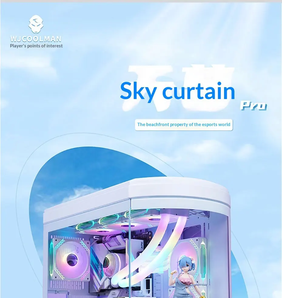 WJCOOLMAN Sky Ceiling PRO vidrio curvo vista al mar apartamento caja de computadora compatible con placa base ATX con refrigeración por agua 240/360