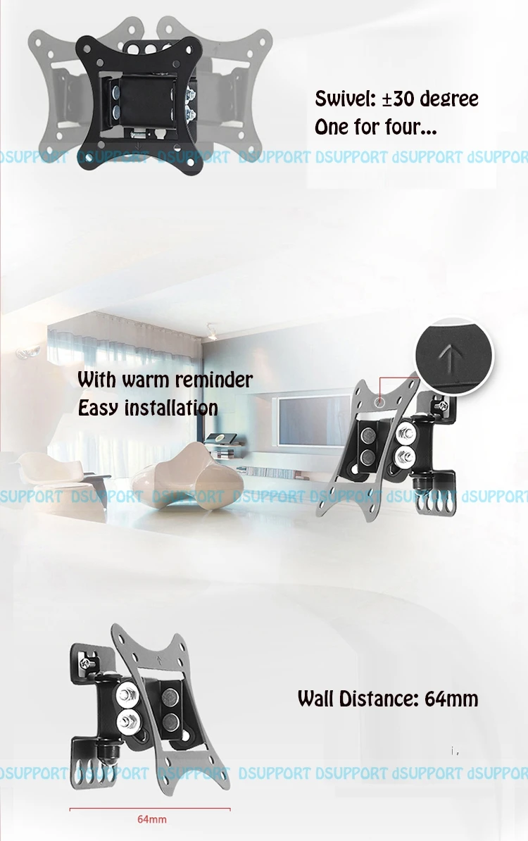 Tamaño de pantalla LCD aplicable: 17 ~ 24" o tamaño más grande si VESA y el peso están bien.
