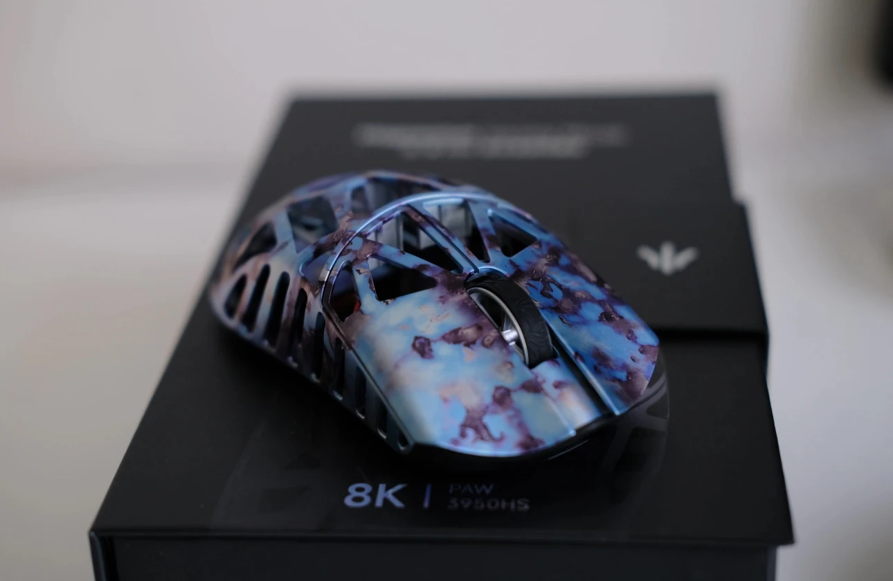El ratón es maravilloso, ligero, rápido, con un software en línea agradable con configuraciones muy interesantes. Todavía no he descubierto cómo conectarlo por USB, así que estoy sentado frente al receptor. El embalaje es bueno, todo llegó intacto, ¡el color es impresionante! En la foto no se ve muy bien, pero en la vida real brilla maravillosamente bajo la luz.