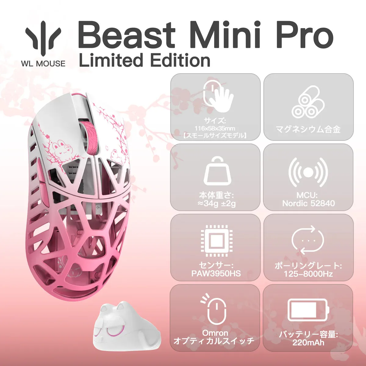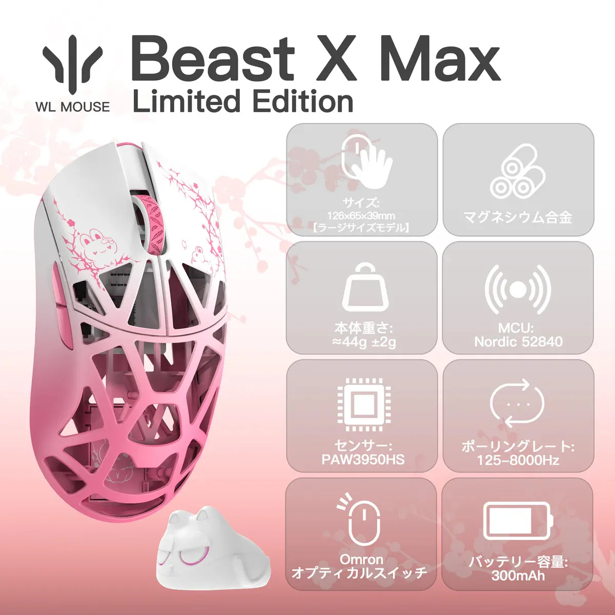 WLMOUSE Beast Serie X Edición limitada templada (Mini/X/Max)WLMOUSE Conejo rosa WLMOUSE templado