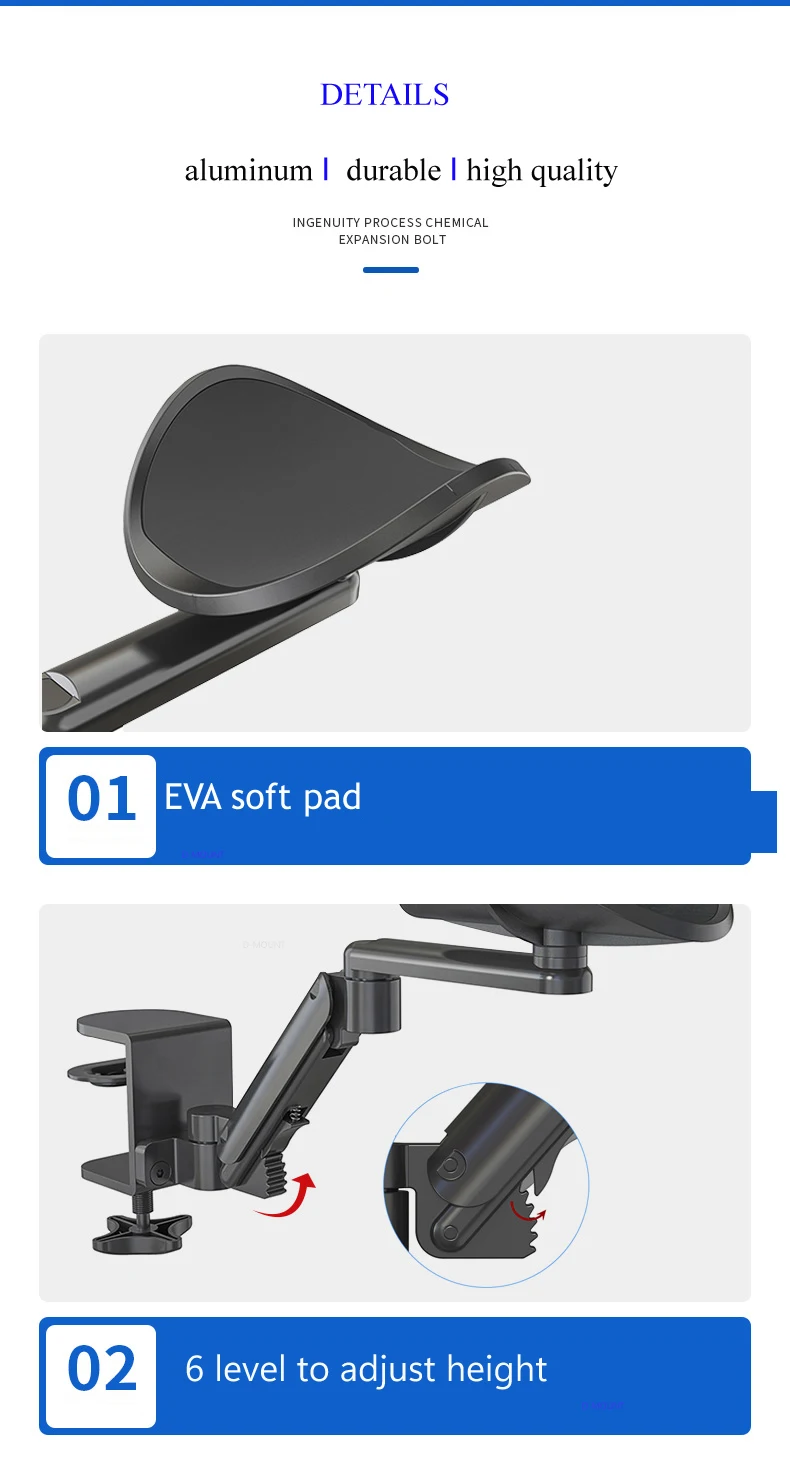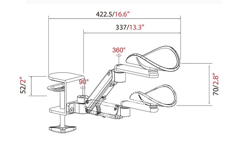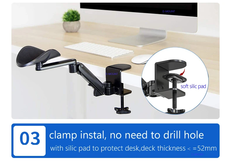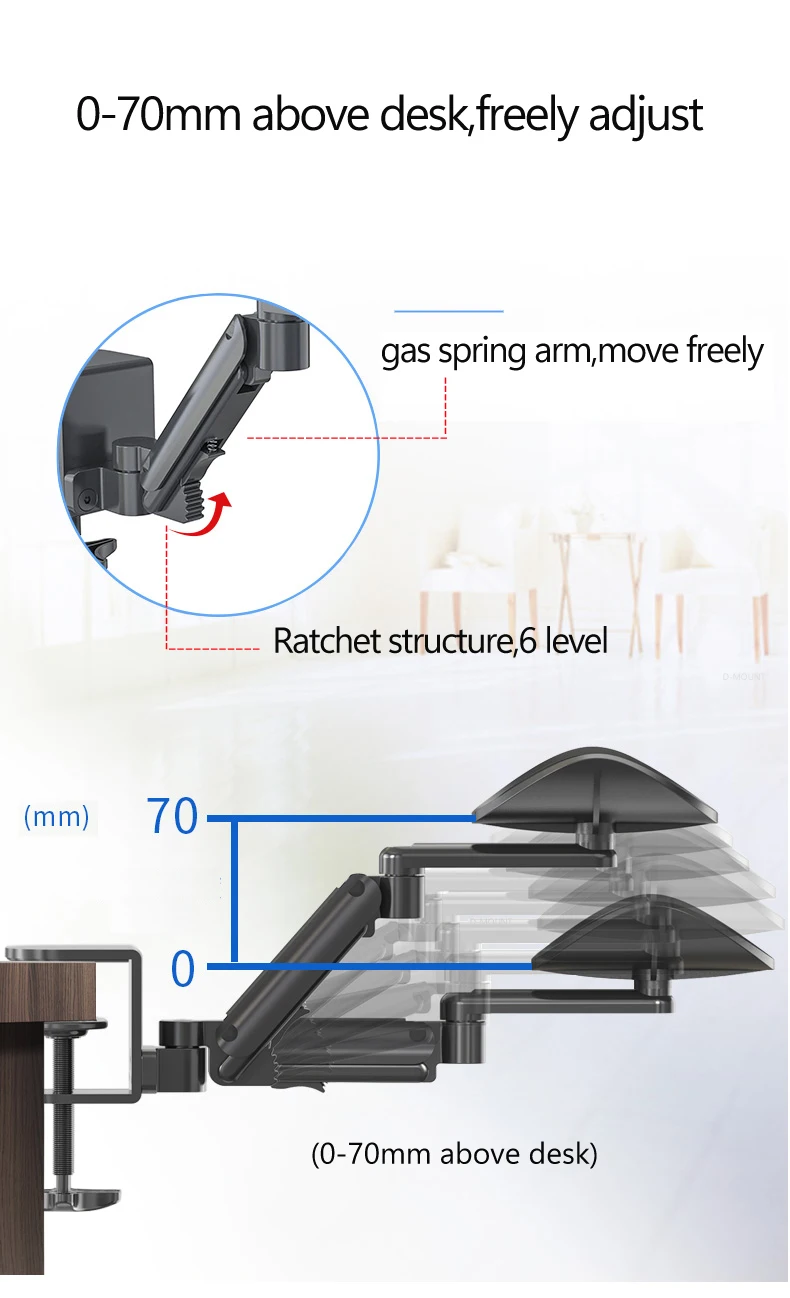 Comprar WM50-soporte de muñeca de metal de aluminio para escritorio, abrazadera de reposabrazos de 0-52mm, giratorio 360 resorte de gas, brazo dual que se mueve hacia arriba y hacia abajo, 0-70mm, sobre el escritorio