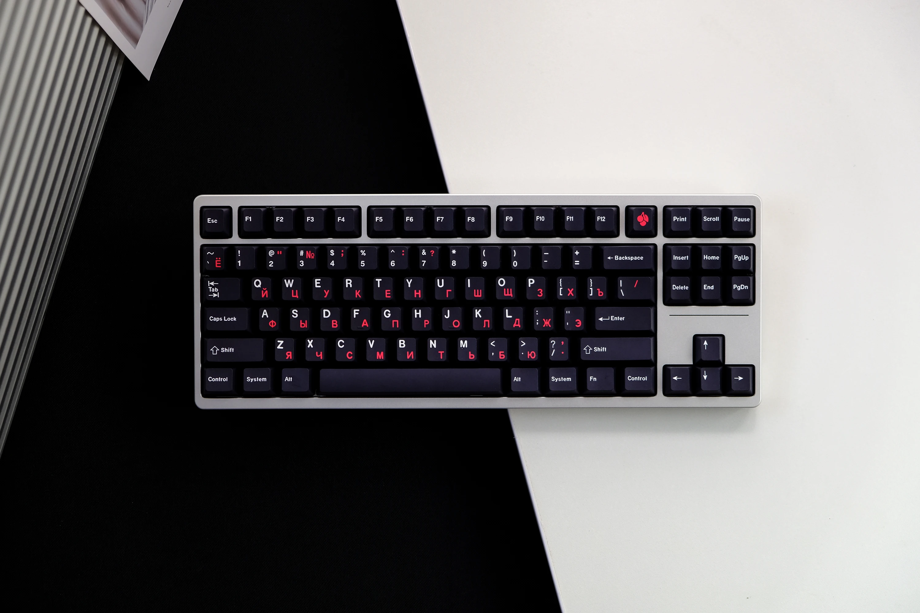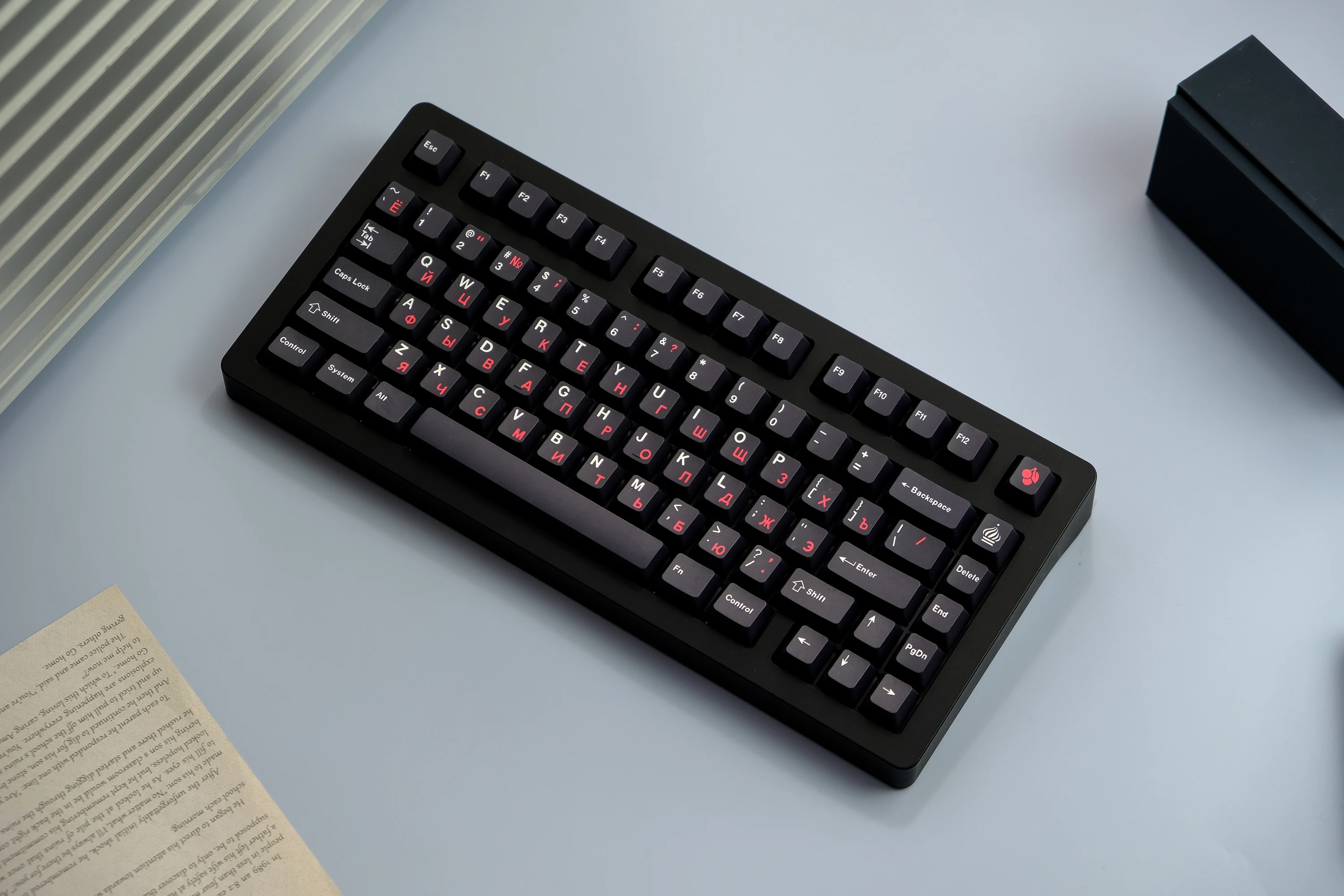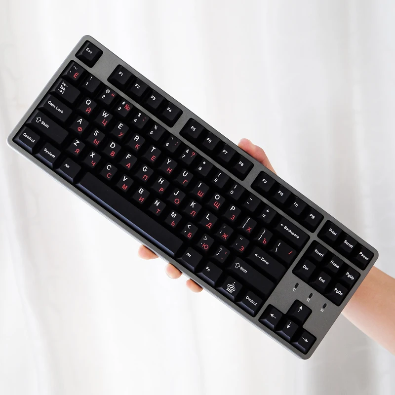 Comprar WOB GMK-teclas rusas negras y rojas, teclas con perfil de cereza, sublimación de tinte PBT, teclas personalizadas para interruptor MX, tablero mecánico