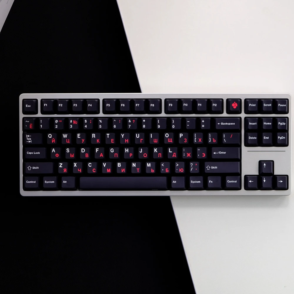 Comprar WOB GMK-teclas rusas negras y rojas, teclas con perfil de cereza, sublimación de tinte PBT, teclas personalizadas para interruptor MX, tablero mecánico