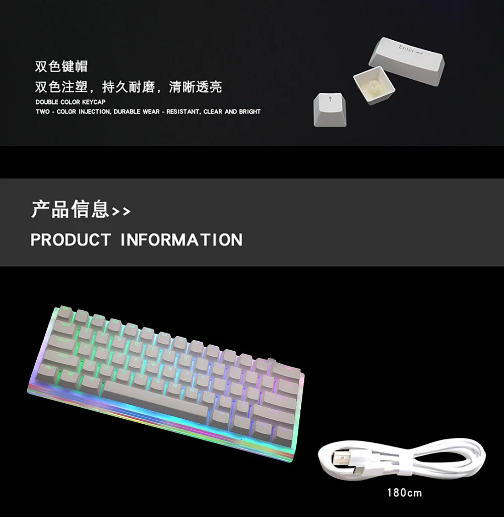 Comprar Womier-Teclado mecánico K61 de 61 teclas, 60%, 60 PCB, interruptor intercambiable en caliente, compatible con efectos de iluminación con interruptor RGB led